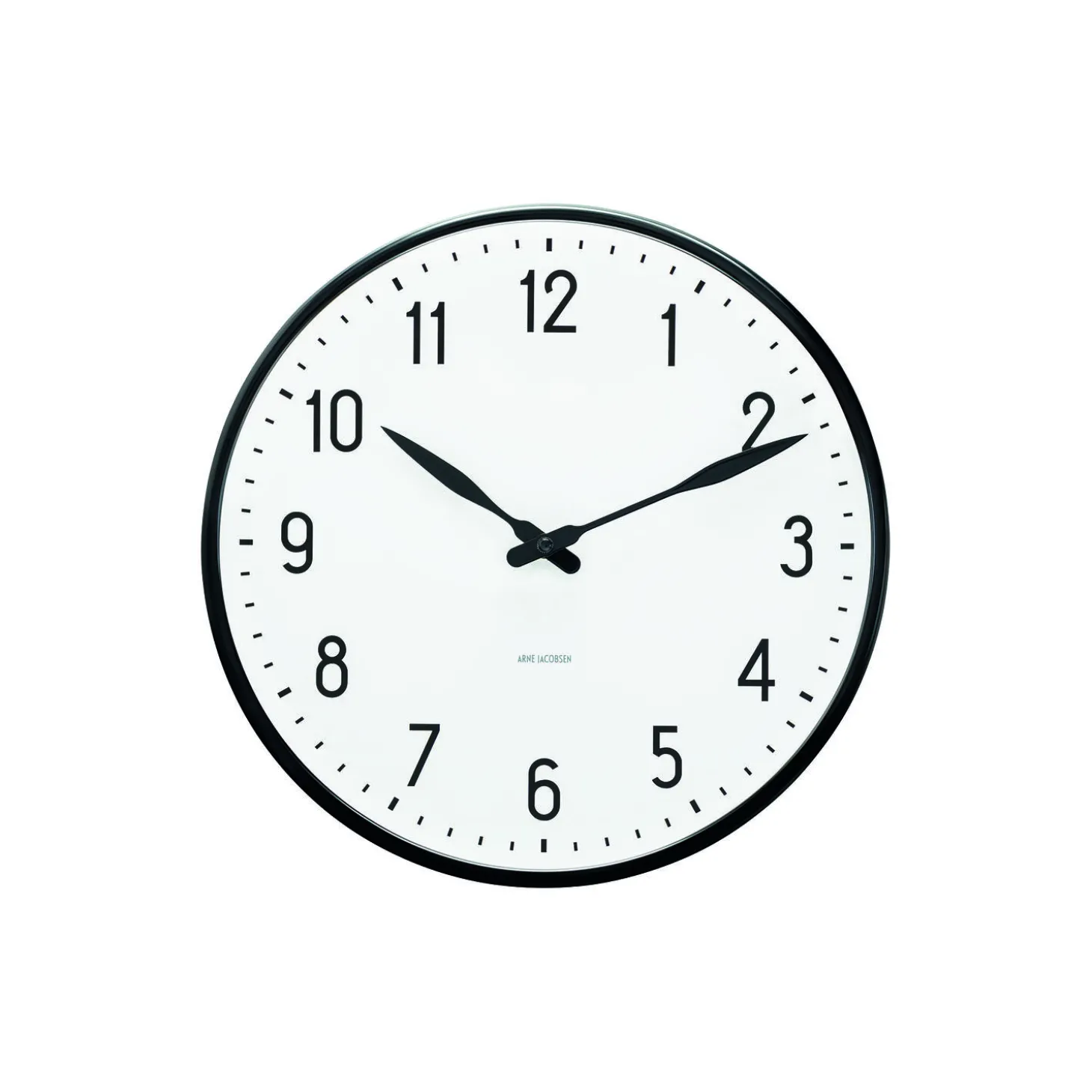 Få tjek på tiden og styr på tidens indretningstendenser. Arne Jacobsens Station ur blev oprindeligt tegnet til elvare-producenten LK i 1941. Originaldesignet for den ikoniske klassiker er nu genskabt og forvandler en anonym hvid væg til et designstatement. Det grafiske design understreges af en topring i sort aluminium og er et fint bevis på, hvorfor mange af Arne Jacobsens designobjekter er blevet folkeeje. Men sine markante og tidstypiske tal er væguret let at aflæse for både børn og voksne.