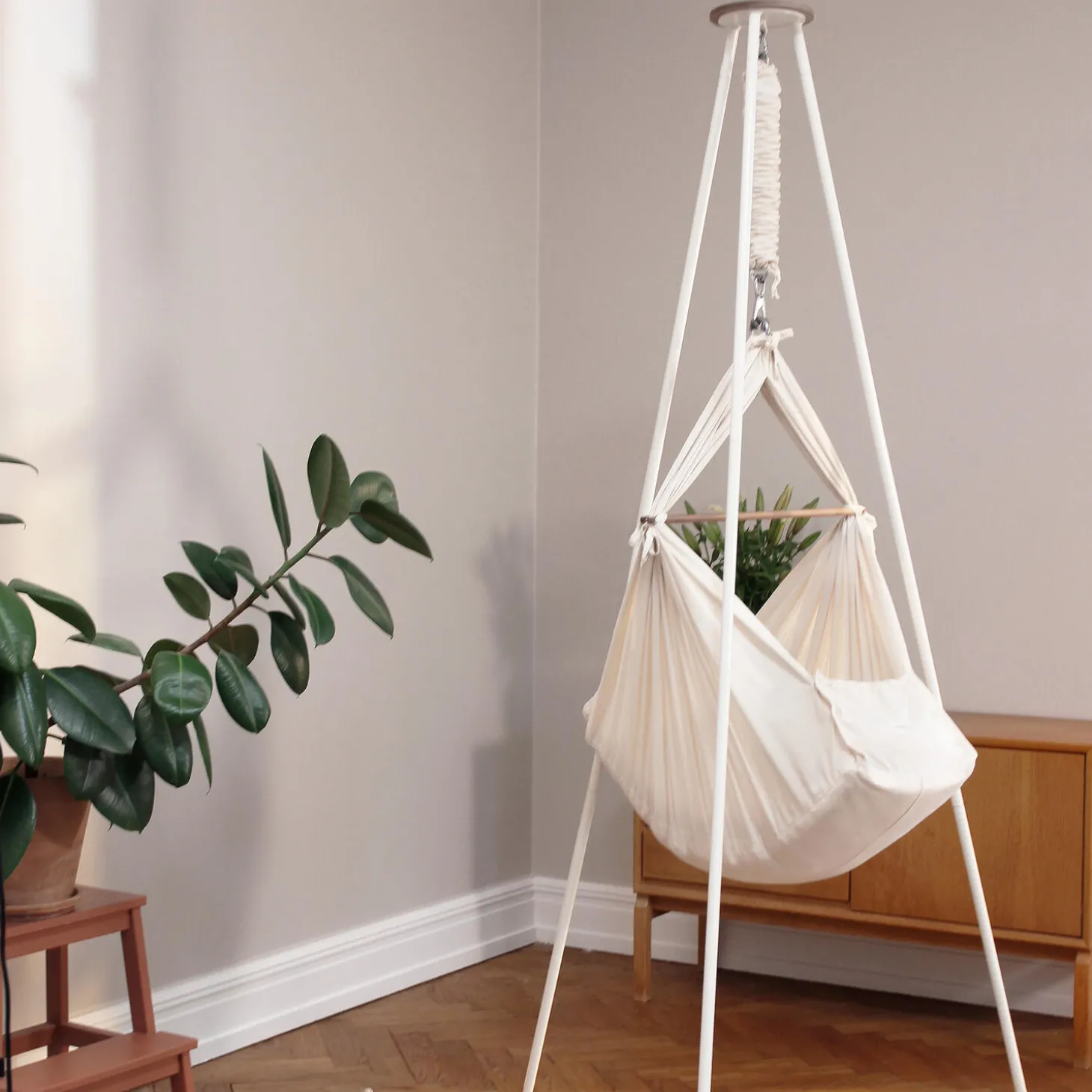 Stilfuldt, sikkert og enkelt – med Moonboons stativ kan du fastgøre din vugge eller slyngevugge, hvor du vil, så du altid kan holde øje med din sovende baby. Dette specialdesignede stativ er fremstillet i overensstemmelse med de strengeste europæiske sikkerhedsstandarder, så du kan være sikker på, at dit barn sover trygt og godt. Med tre ben i slanke, runde profiler er stativet let at samle og pakke væk, når det ikke er i brug, hvilket gør det både alsidigt og transportabelt. Stativet er 194 cm højt og kan holde en vugge eller slyngevugge samt en vuggemotor. Vælg mellem to stilfulde farver, mørkegrå eller hvid, og få lidt klassisk skandinavisk design ind i dit hjem.
