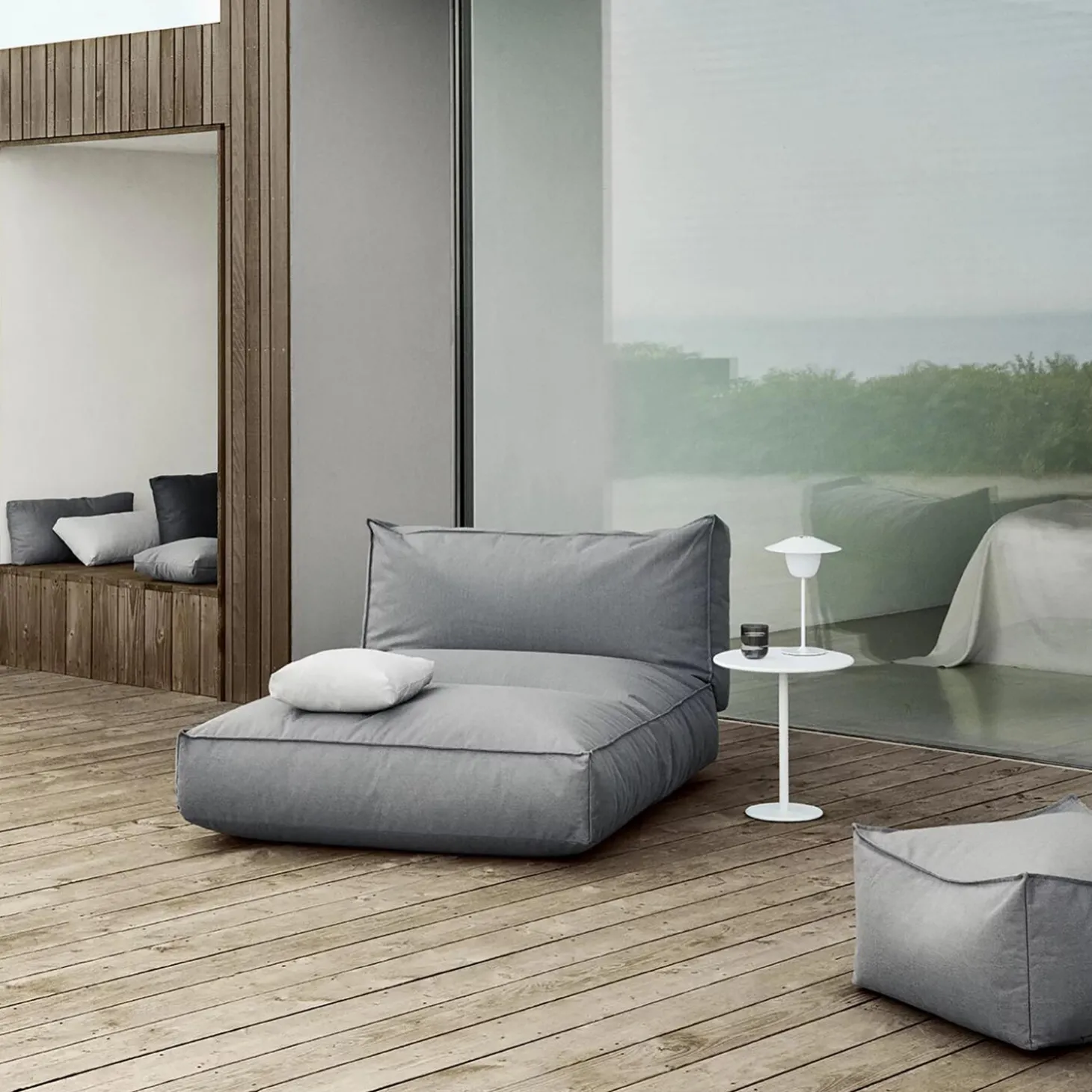 Stay with me! Reliable, uncomplicated and always there for you… The Stay outdoor furniture collection by Florian Kallus and Sebastian Schneider from the design studio kaschkasch for blomus is like a good friend who makes your life a little more comfortable. The STAY outdoor furniture comes with a robust 2-layer premium base as standard. The water-repellent and quick-drying covering protects the inner waterproof layer from damage. The special material properties of the floor surface ensure that mildew stains cannot take hold. The STAY bed tempts you to stay and enjoy the warm season outside in a relaxed way. The outdoor lounger made of water-repellent material in light grey promises the ultimate relaxing feeling. The high-quality, weatherproof textile is also easy to clean and UV-resistant. The cushion filling made of environmentally neutral EPS beads makes the lounger stable in volume and shape. And so comfortable that you won’t even want to get up. Due to the lightweight materials, the bed can be moved comfortably on the terrace or in the garden. The bed is available in different sizes, fabrics and colours. A matching seat pouf to extend the lying surface and cosy cushions complete the stylish outdoor furniture range. Includes metal bracket to adjust the angle of the back section. Outside: water-repellent Inside: waterproof due to PA and TPU coating, light fastness ISO 105B02, (light fastness 6), abrasion resistance of 30.000 Martindale Filling: EPS beads A matching protective cover or storage cover is available for all outdoor lounge furniture. Protective covers: – for the Lounger Size L: 62018 – for the Lounger: 62036 – for the Pouf: 62035 – for the Day Bed Size S: 62018 – for the Day Bed: 62037 Storage covers: – for the Lounger Size L: 62049 – for the Lounger: 62046 – for the Pouf: 62045 – for the Day Bed S: 62048 – for the Day Bed: 62047 For optimal care of your STAY furniture collection and cushions, we offer our MEDA cleaning and care products for outdoor textiles. Stains and unpleasant odours can be easily removed with our MEDA cleaning agent (31058). After cleaning, we recommend our MEDA impregnating agent (31059), which maintains the original water- and dirt-repellent impregnation of the outdoor fabric.
