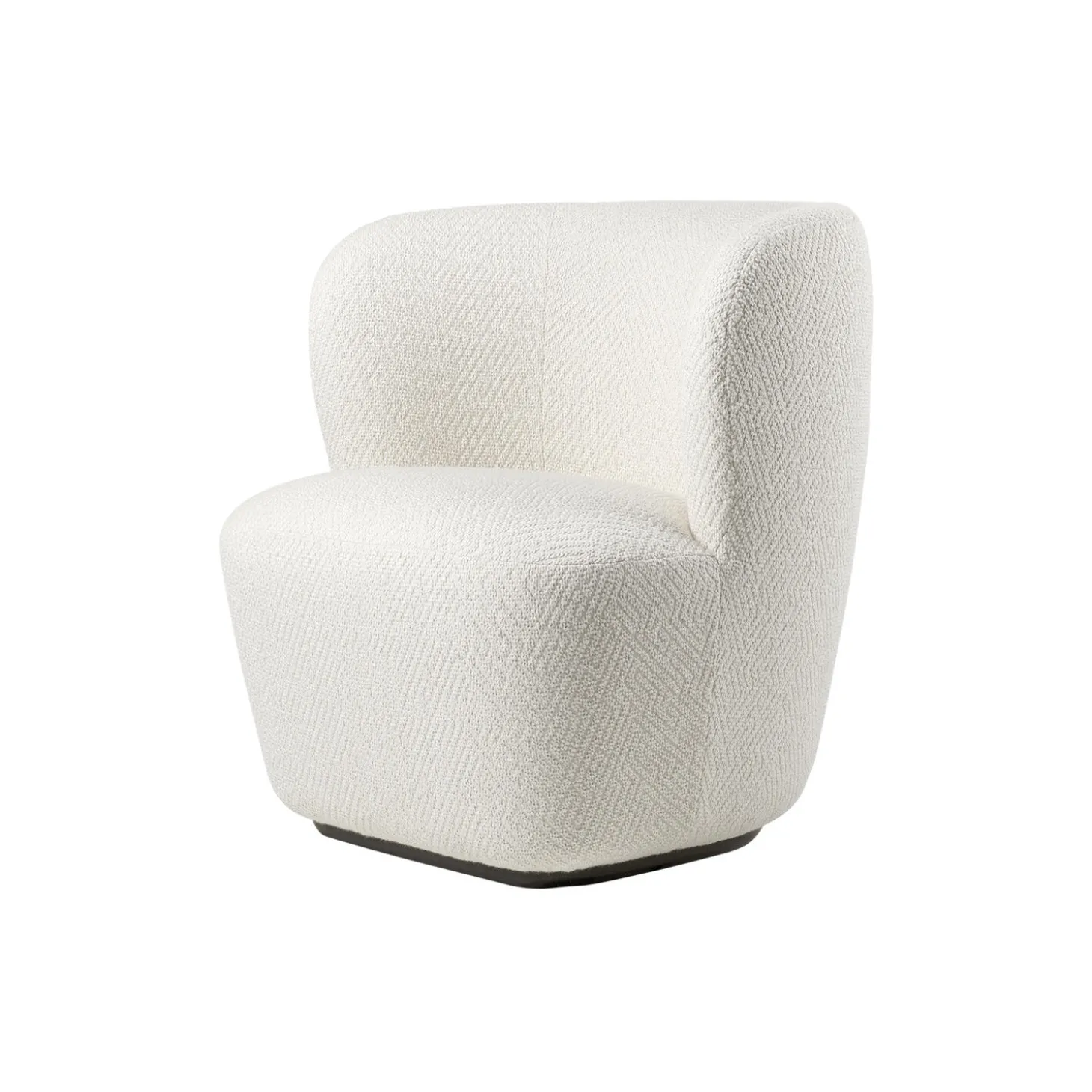 Stay Lounge Chair fuldpolstret i Plain 0001 tekstil af Enzo Degli Angiuoni og base i sortmalet MDF fra GUBI. Farve: Plain 0001/black. Mål: H: 76 x B: 70 x D: 70 cm. Siddehøjde: 41 cm. Design: Space Copenhagen.