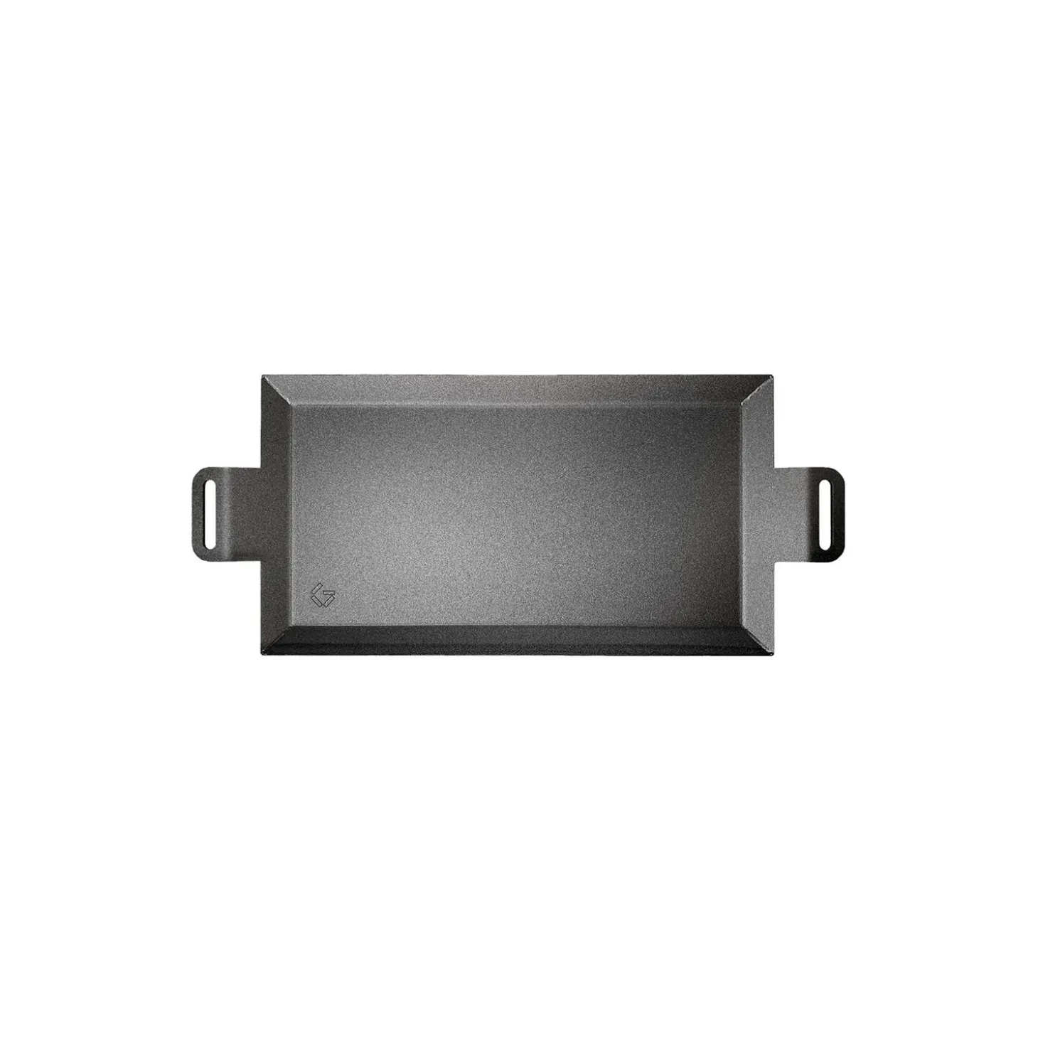 Oplev et utroligt alsidigt stegeredskab, som både kan bruges på induktion, gas, keramisk komfur, i ovn, på grill og over bål. Gastrotools’ stegeplade er skabt i Sverige med over 100 års håndværkserfaring i svensk carbonstål, som giver en sublim varmelagring for perfekte stegeresultater. Siderne er bukket, så fedt, marinade og væske bliver på stegepladen. De hævede håndtag giver nem mulighed for at løfte stegepladen – eller hænge den op på en krog. Overfladen er brændt ind med vegetabilske olier, så du får et naturligt nonstick-alternativ, der kun bliver bedre og bedre med tiden. Brug og pleje: Undgå rengøring med sæbe. Varm stegepladen langsomt op og undlad store temperaturskift. Brug ekstra fedtstof i starten, så den opbygger sin naturlige nonstick-effekt. Vigtig information om brugDenne stegeplade er lavet af ulegeret carbonstål og må ikke anvendes til sure fødevarer (fx tomat, vin, citrus, eddike) eller til opbevaring af mad. Syre kan reagere med stålet og medføre uønsket afgivelse af jern. Pladen skal vedligeholdes korrekt for at sikre en naturlig beskyttende overflade. Produktet er beregnet til kontakt med fødevarer og overholder gældende EU-regler ved brug iht. anvisningerne.