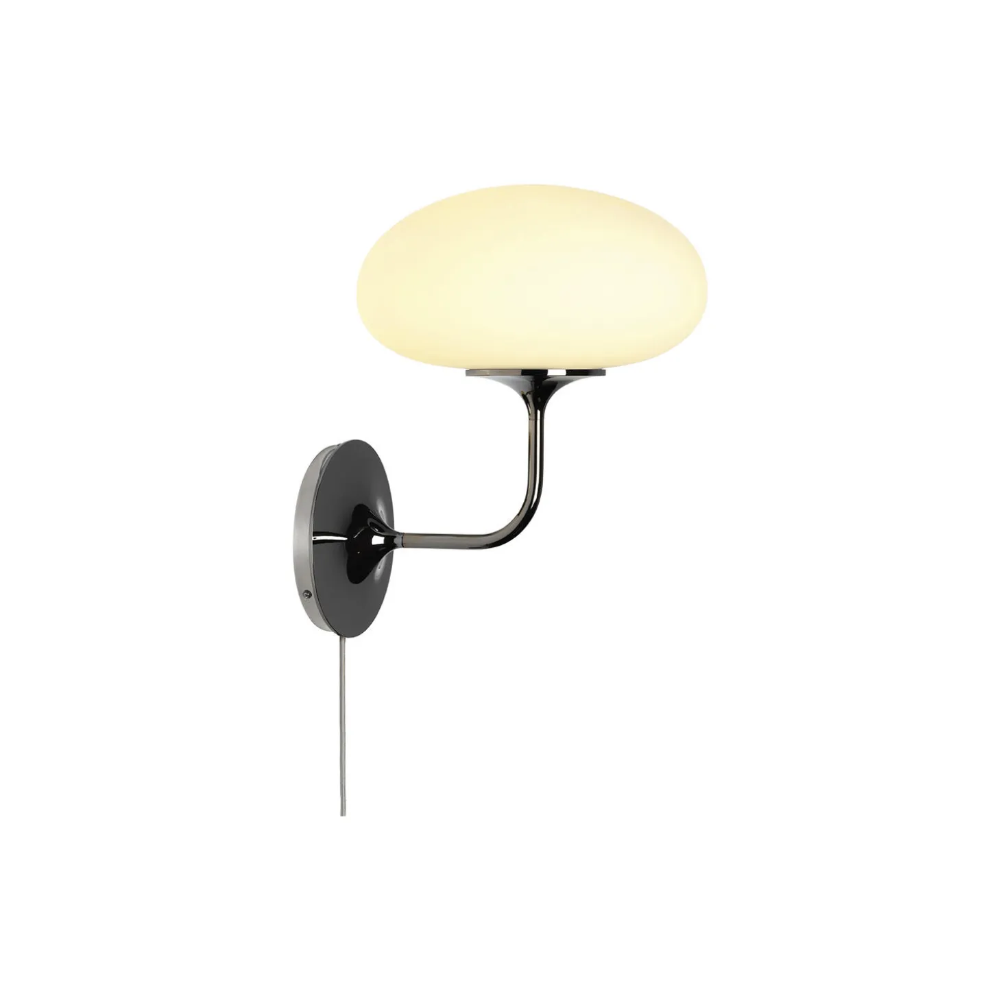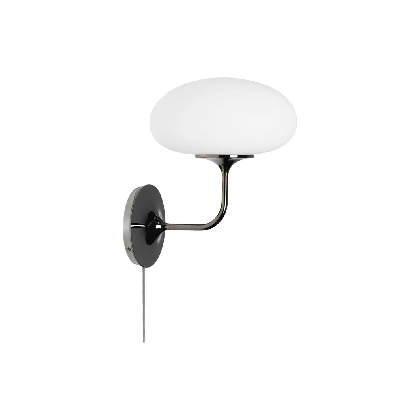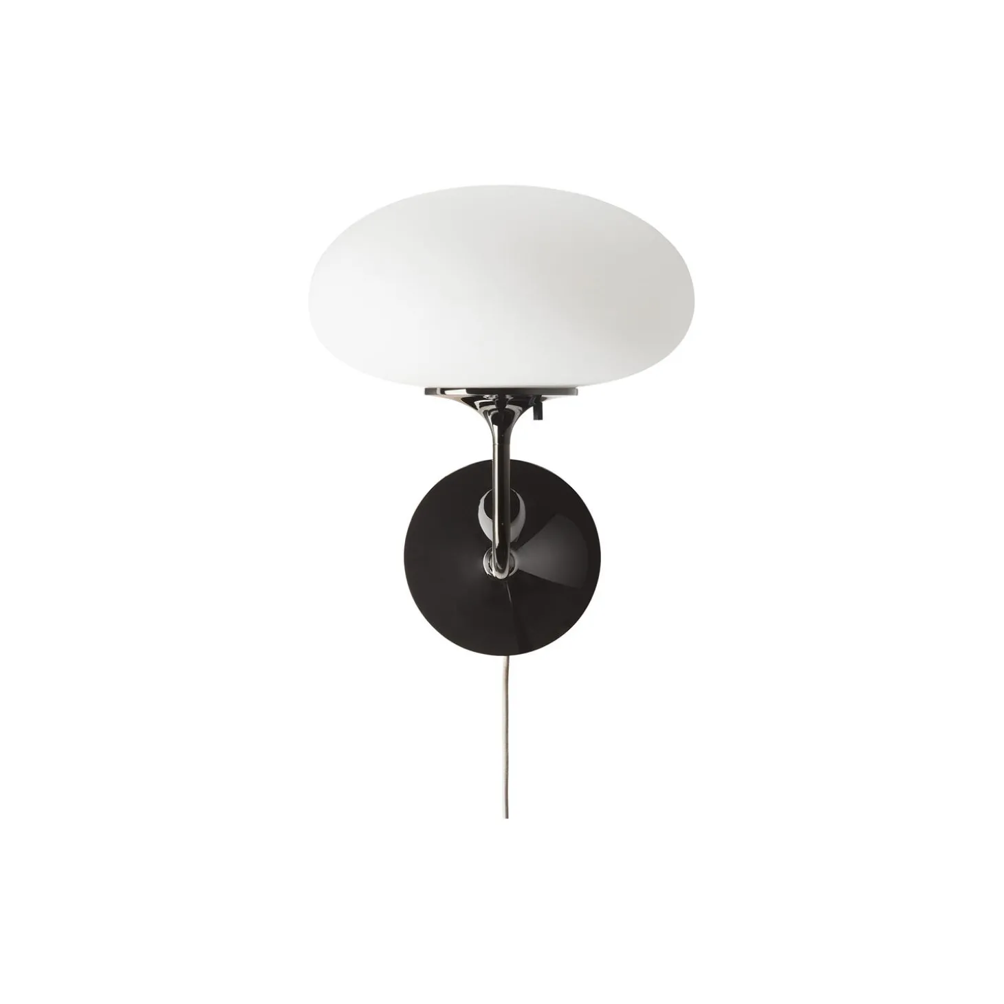 Stemlite Wall Lamp i stål, aluminium og glas fra GUBI. Farve: black chrome. Mål: H: 42,5 x Ø 32 cm. Lyskilde: 5-6W LED E27. Design: Bill Curry.