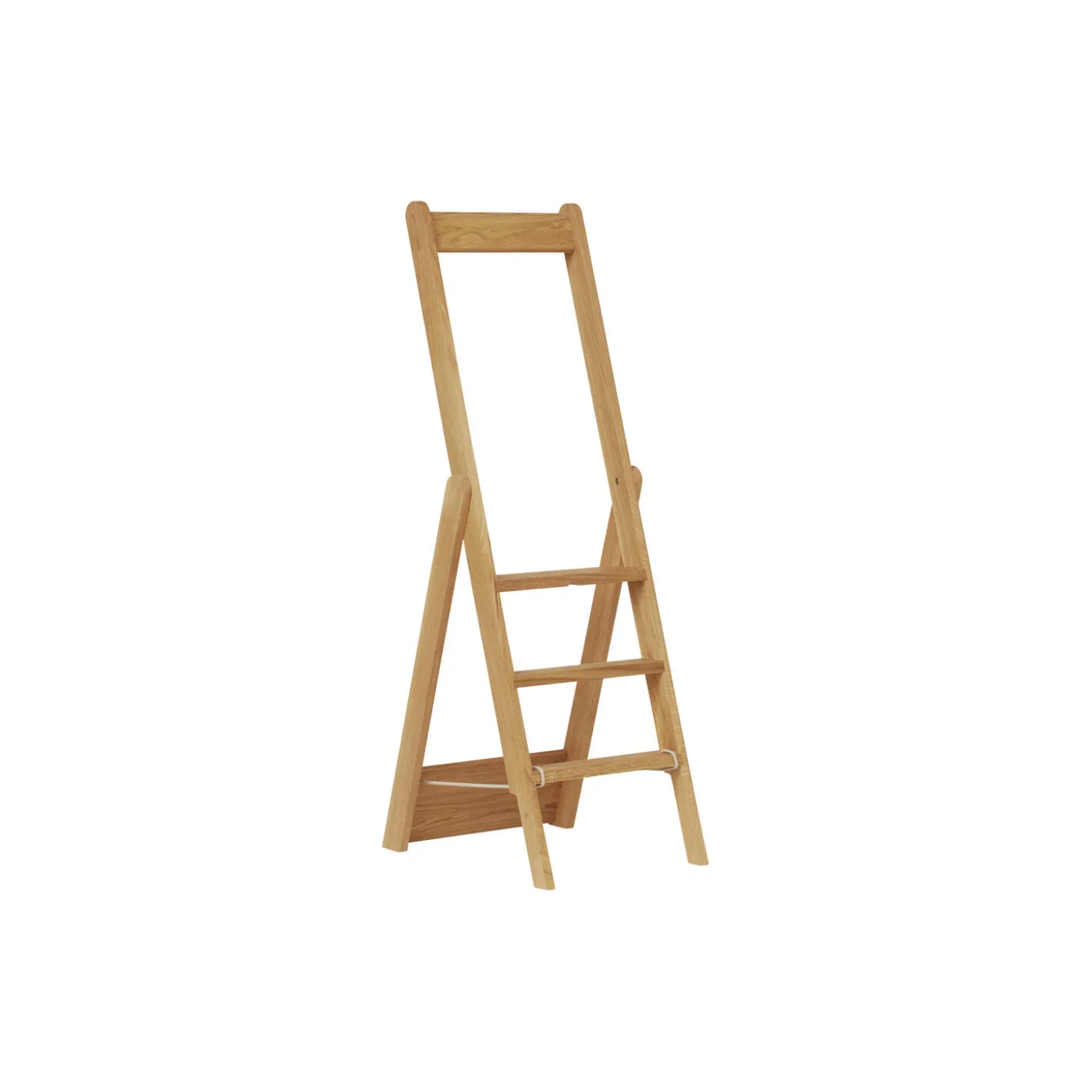 Denne fleksible og gennemtænkte trappestige med tre trin er funktionel og udført i høj kvalitet. Det øverste trin har en større dybde for ekstra sikkerhed og komfort, og stigen afsluttes af et bredt panel som runder designet af og giver god balance. Stigen kan foldes sammen og hænges op på væggen på den lille medfølgende træknage. På den måde kan den også fungere som et dekorativt objekt på væggen. Den ultrastærke flagline sikrer både, at stigen ikke klap per sammen, når den er i brug, og at den ikke ridser væggen, når den er hængt op