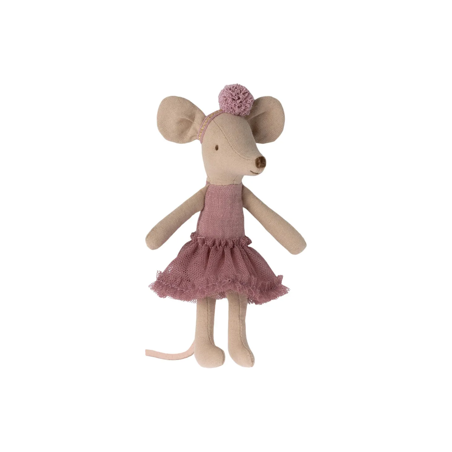 Storesøster mus som en yndefuld ballerina. Hun har en smuk lyngfarvet tyl nederdel på og et smukt pandebånd – klar til timevis af dans.
