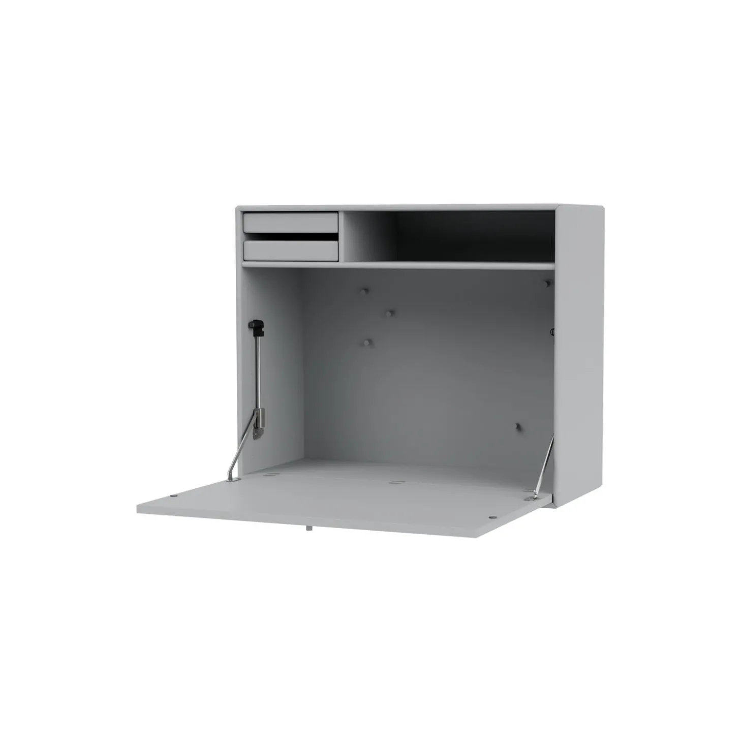 STUDIO er et sekretærmodul – en lille arbejdsplads og hjemmekontor som kan foldes ud om morgenen og pakkes diskret væk, når det er fyraften. STUDIO har en indvendig magnetisk opslagstavle og kommer med fem magneter lakeret i samme farve som modulet. Øverst har modulet en hylde samt to små bakkeskuffer, som kan tages helt ud af modulet. STUDIO er en kompakt lille skriveplads med mange funktioner – perfekt til multifunktionelle rum.