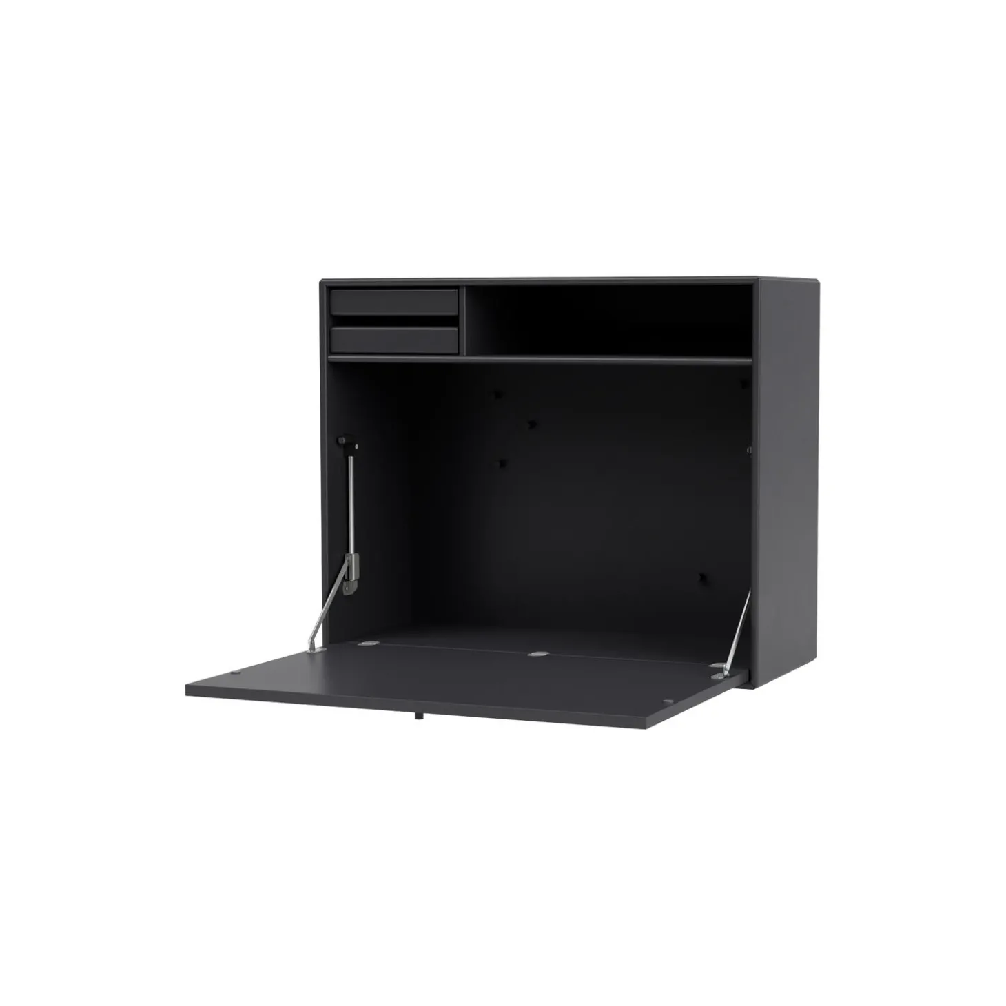 STUDIO er et sekretærmodul – en lille arbejdsplads og hjemmekontor som kan foldes ud om morgenen og pakkes diskret væk, når det er fyraften. STUDIO har en indvendig magnetisk opslagstavle og kommer med fem magneter lakeret i samme farve som modulet. Øverst har modulet en hylde samt to små bakkeskuffer, som kan tages helt ud af modulet. STUDIO er en kompakt lille skriveplads med mange funktioner – perfekt til multifunktionelle rum.