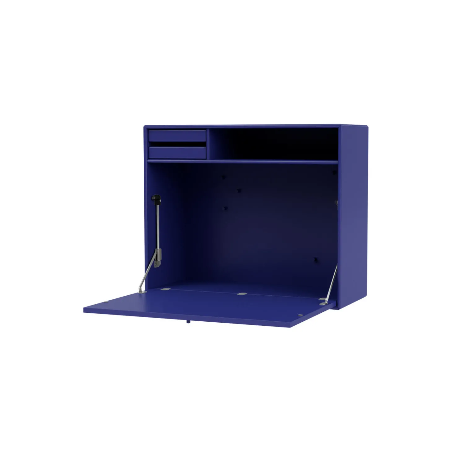 STUDIO er et sekretærmodul – en lille arbejdsplads og hjemmekontor som kan foldes ud om morgenen og pakkes diskret væk, når det er fyraften. STUDIO har en indvendig magnetisk opslagstavle og kommer med fem magneter lakeret i samme farve som modulet. Øverst har modulet en hylde samt to små bakkeskuffer, som kan tages helt ud af modulet. STUDIO er en kompakt lille skriveplads med mange funktioner – perfekt til multifunktionelle rum.