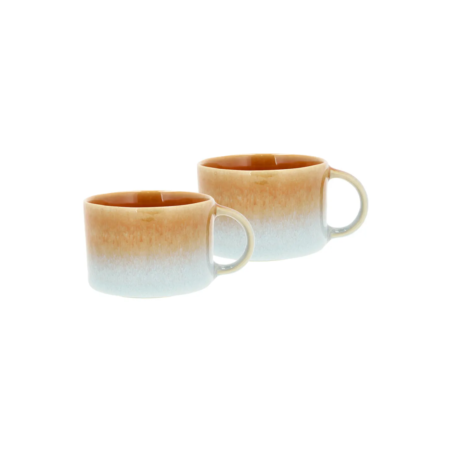 2 krus, 16 cl, i stentøj. Stentøjsstellet fra Villa Styles fremstilles i Portugal af keramikere med stor knowhow og erfaring. Alle steldelene formes og finpudses i hånden, hvilket giver et skønt og unikt stentøjsstel samt en glat og fin overflade. Herefter påføres den reaktive glasur, og stentøjet brændes i ovnen ved 1150 grader. Den reaktive glasur gør hvert produkt unikt. Udseendet afhænger af formen, brændetemperaturen og placeringen i ovnen. Alle glasurer er skabt fra bunden af vores portugisiske producent. De nøje udvalgte glasurer i livsbekræftende og eksklusive farver tiltaler øjet. Serien kan sættes sammen på kryds og tværs, og derved skabes et personligt stel. Den brede vifte af farver indeholder noget for enhver smag, både den farveglade og den mere afdæmpede. Fabrikken genanvender vandet, der bruges i produktionen, og varmen genereret af keramikovnene bliver ført ind i rummene, hvor keramikken tørres, så al gasenergi genanvendes. Fabrikken laver sit eget ler og genanvender alle rester ved at blande dem med nyt ler og bruge blandingen til nye produkter, så der ikke er noget, der går til spilde.