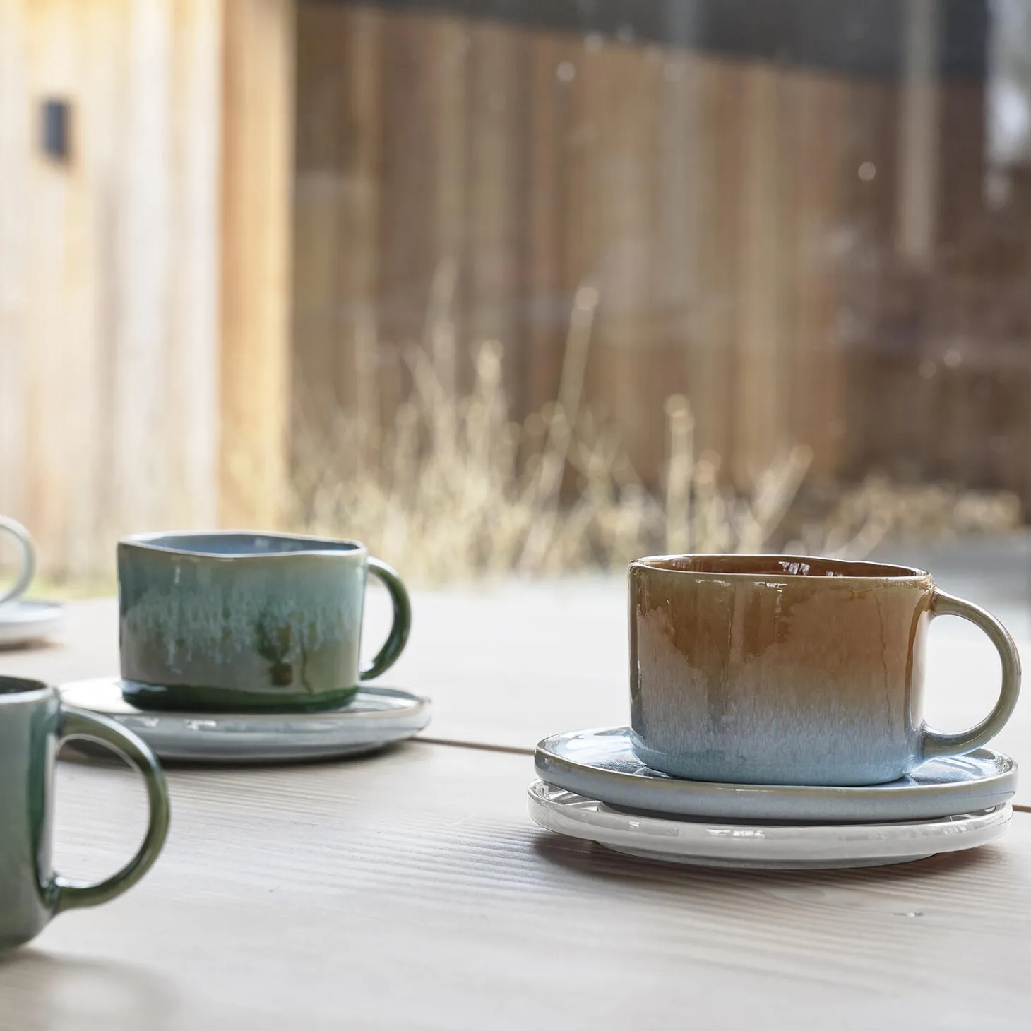 2 underkopper, D 13,2 cm, i stentøj. Stentøjsstellet fra Villa Styles fremstilles i Portugal af keramikere med stor knowhow og erfaring. Alle steldelene formes og finpudses i hånden, hvilket giver et skønt og unikt stentøjsstel samt en glat og fin overflade. Herefter påføres den reaktive glasur, og stentøjet brændes i ovnen ved 1150 grader. Den reaktive glasur gør hvert produkt unikt. Udseendet afhænger af formen, brændetemperaturen og placeringen i ovnen. Alle glasurer er skabt fra bunden af vores portugisiske producent. De nøje udvalgte glasurer i livsbekræftende og eksklusive farver tiltaler øjet. Serien kan sættes sammen på kryds og tværs, og derved skabes et personligt stel. Den brede vifte af farver indeholder noget for enhver smag, både den farveglade og den mere afdæmpede. Fabrikken genanvender vandet, der bruges i produktionen, og varmen genereret af keramikovnene bliver ført ind i rummene, hvor keramikken tørres, så al gasenergi genanvendes. Fabrikken laver sit eget ler og genanvender alle rester ved at blande dem med nyt ler og bruge blandingen til nye produkter, så der ikke er noget, der går til spilde.