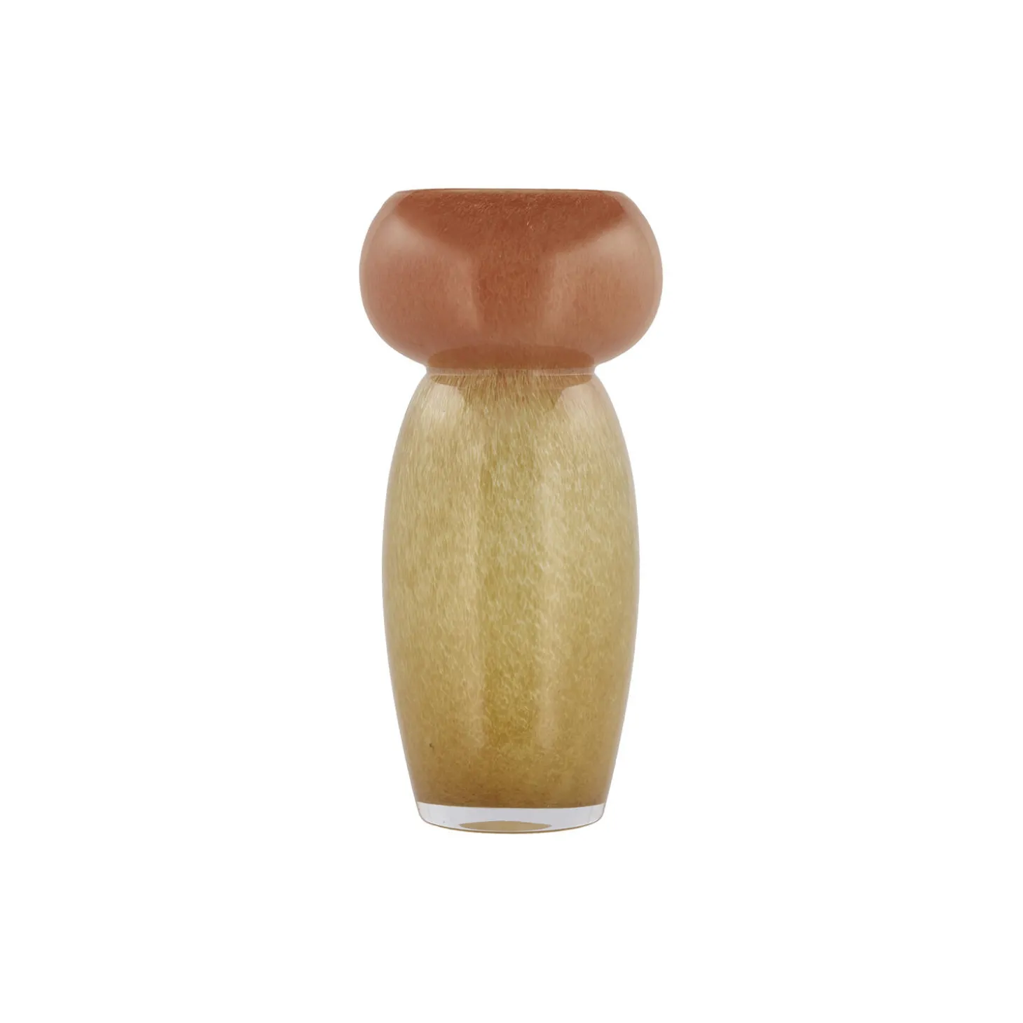 Vase i mundblæst gennemfarvet glas med en unik og moderne form, der skaber blikfang i ethvert rum. Vasen har en enkel, men alligevel iøjnefaldende form med en smal bund og en bred, åben top. De bløde, afrundede kanter skaber et indbydende udseende, mens de fine farver smelter sammen på smukkeste vis. Når man løfter vasen, mærker man tyngden af det tykke glas, som giver et solidt og holdbart udtryk. Selv uden blomster stråler vasen smukt, mens den med blomster bliver en elegant ramme, der fremhæver naturens egne kunstværker.