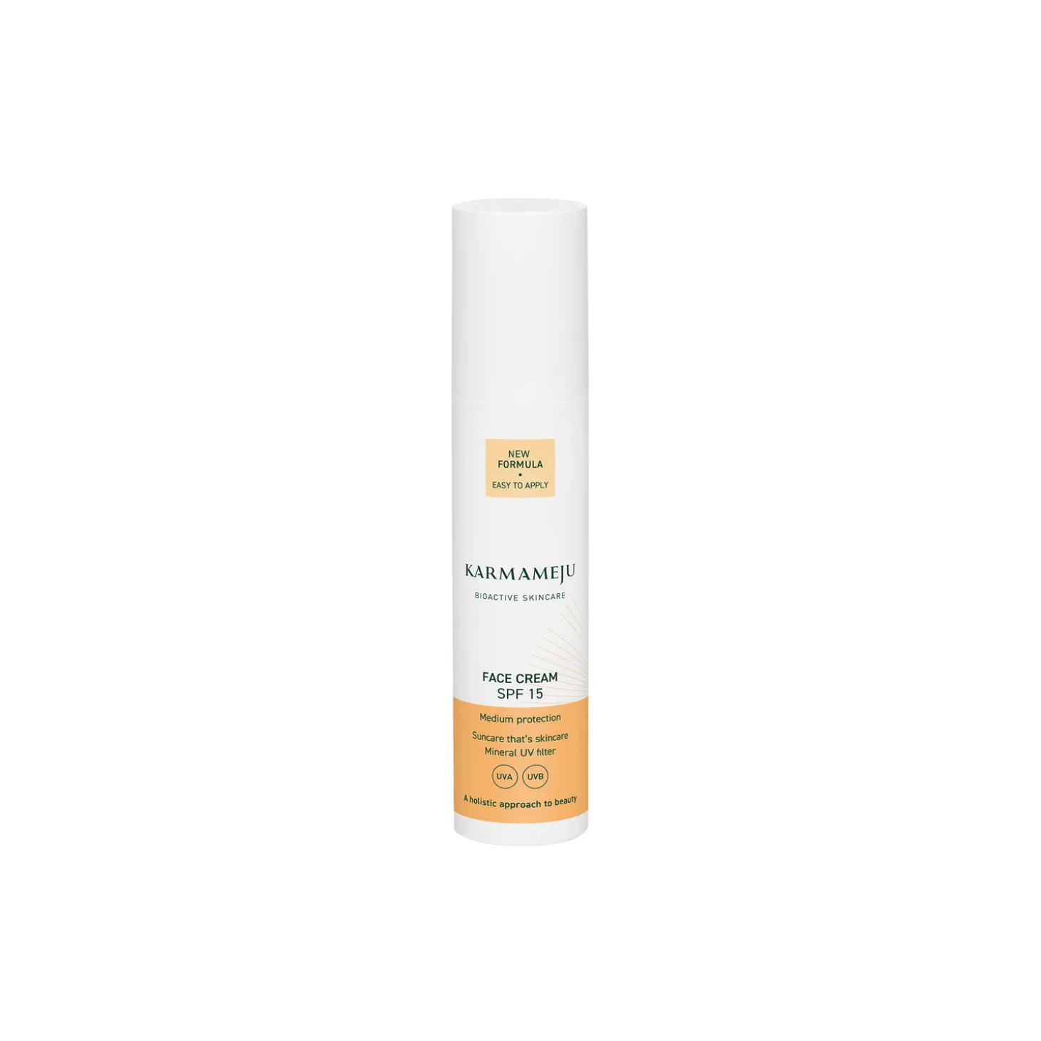 Ny formel: Mineralsk solfilter, usynligt på huden.Fugtmættende ansigtscreme med SPF baseret på mineralsk solfilter, der ikke tilstopper porerne og kan erstatte dagcreme eller anvendes som et ekstra solbeskyttende trin i ansigtsritualet. Den antioxidantrige formel inkluderer superhydrerende hyaluronsyre og klinisk dokumenteret bio-retinol fra måttebønnefrøekstrakt, der stimulerer kollagenproduktionen og dermed hjælper med at forebygge og reducere forekomsten af rynker og tegn på for tidlig aldring af huden. En hudforbedrende ansigtscreme med SPF og med et væld af økologiske, bæredygtige, high-performance og klinisk dokumenterede ingredienser, som gør ansigtscremen ideel til hverdagsbrug. Ansigtscremens mineralske solfilter er let og transparent på huden, absorberes hurtigt og bliver siddende. Den fungerer ideelt i et lag-på-lag hudplejeritual.Egnet til alle hudtyper. Dermatologisk testet til sensitiv hud.ANVENDELSEOpvarm solcremen mellem hænderne og massér den ind i huden ad to omgange for fuld dækning med SPF. Anvend altid solcreme med fysiske solfiltre som det sidste trin i dit hudplejeritual – enten ovenpå eller i stedet for din ansigtscreme. BIOAKTIVE INGREDIENSER· BIO-RETINOL (MÅTTEBØNNEFRØ-EKSTRAKT)· HYALURONSYRE · E-VITAMIN· ØKOLOGISK ALOE VERA · ØKOLOGISK SHEASMØR· ØKOLOGISK JOJOBAOLIE· ØKOLOGISK MANDELOLIE· ØKOLOGISK LAVENDELEKSTRAKT· ZINKOXID