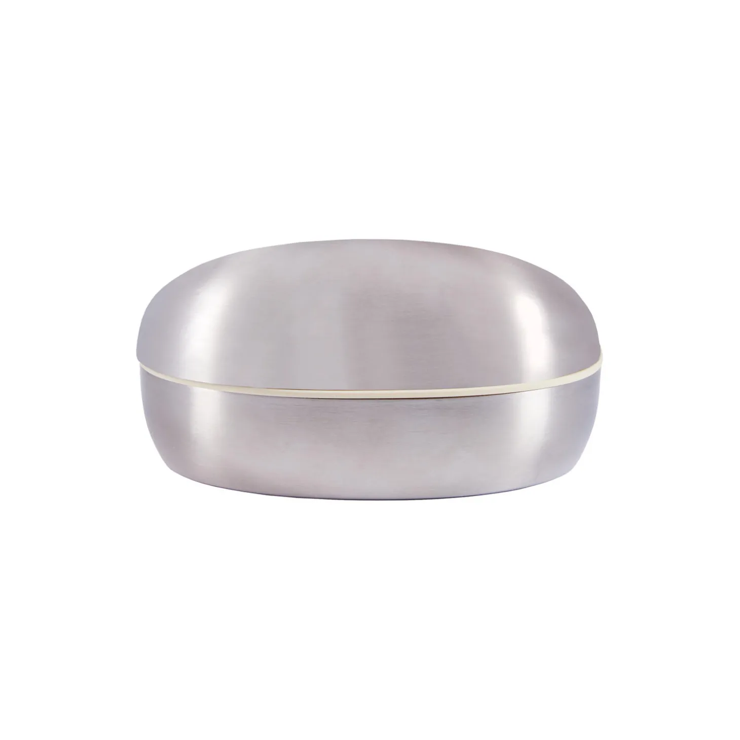 Piet Heins smykkeskrin i rustfrit stål er formet som en elegant superellipse, der forener tidløst design og funktionalitet. Det polerede stål skaber et sofistikeret udtryk, mens det rummelige indre og det bløde indlæg gør det ideelt til opbevaring af smykker. Smykkeskrinet kan fås i to størrelser og med blank eller børstet overflade. Ideel som gave til særlige lejligheder, med mulighed for gravering af navn og dato.