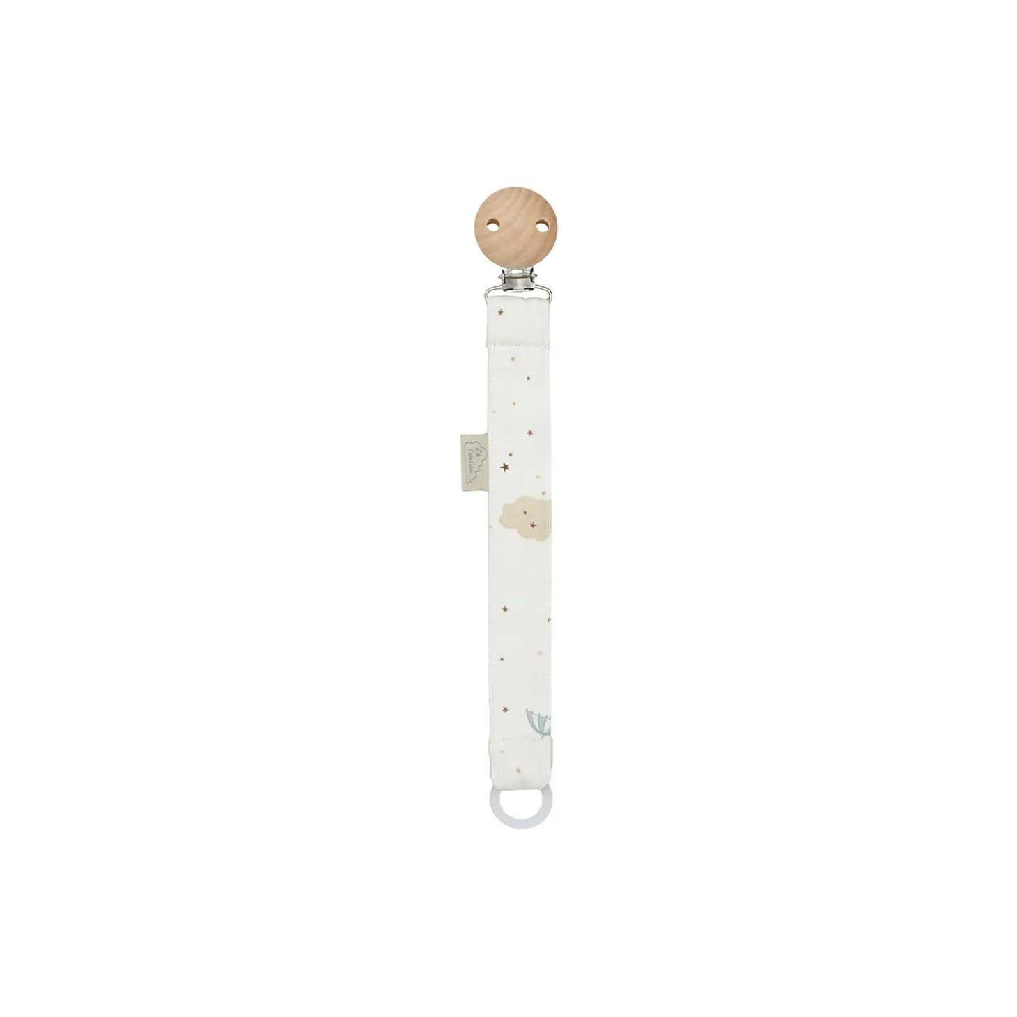 Sød og praktisk suttekæde / suttesnor med rund træclips med to ventilationshuller. Stoffet er lavet af 100% økologisk bomuld og findes i mange fine Cam Cam mønstre. Suttesnoren er testet og overholder alle sikkerhedskrav i den Dansk/Europæiske lovgivning DS/EN 12586 + A1.Suttesnoren må ikke bruges som legetøj, den skal bruges under opsyn og må ikke sidde på barnets tøj når barnet sover. Tjek suttesnoren jævnligt og kassér ved tegn på slitage. Suttesnor i hvide og brune nuancer.