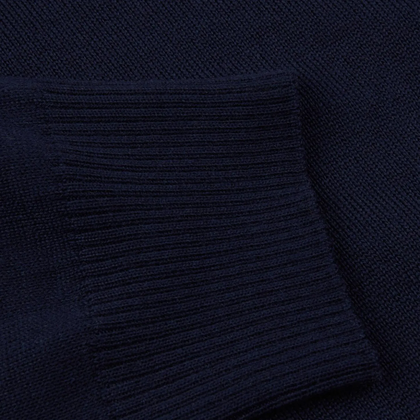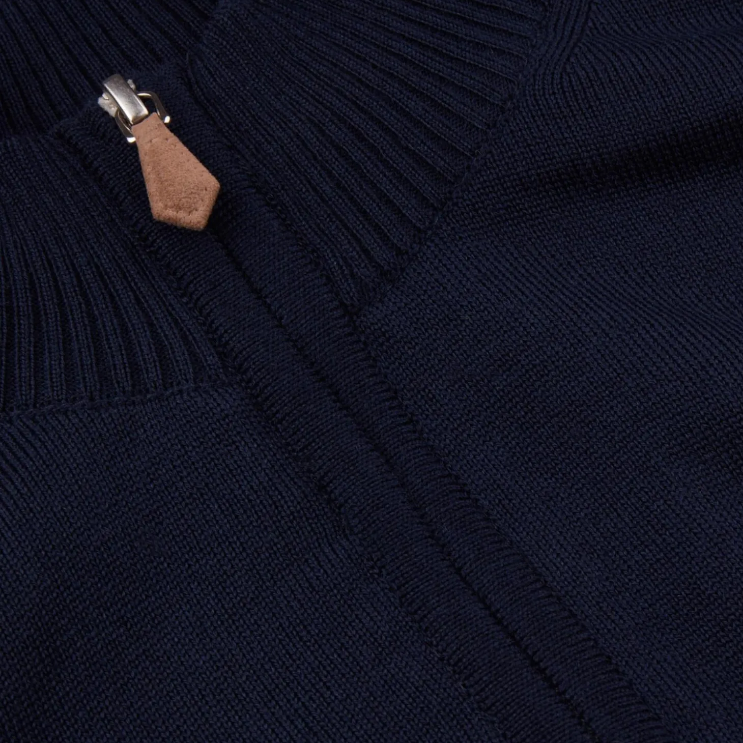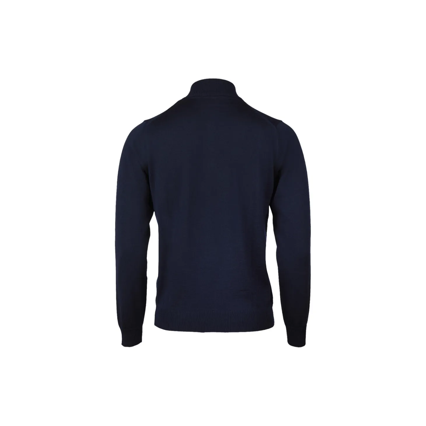 Denne sweater med halv lynlås er fremstillet i merinould og har ribstrikket krave, manchetter og kant forneden.