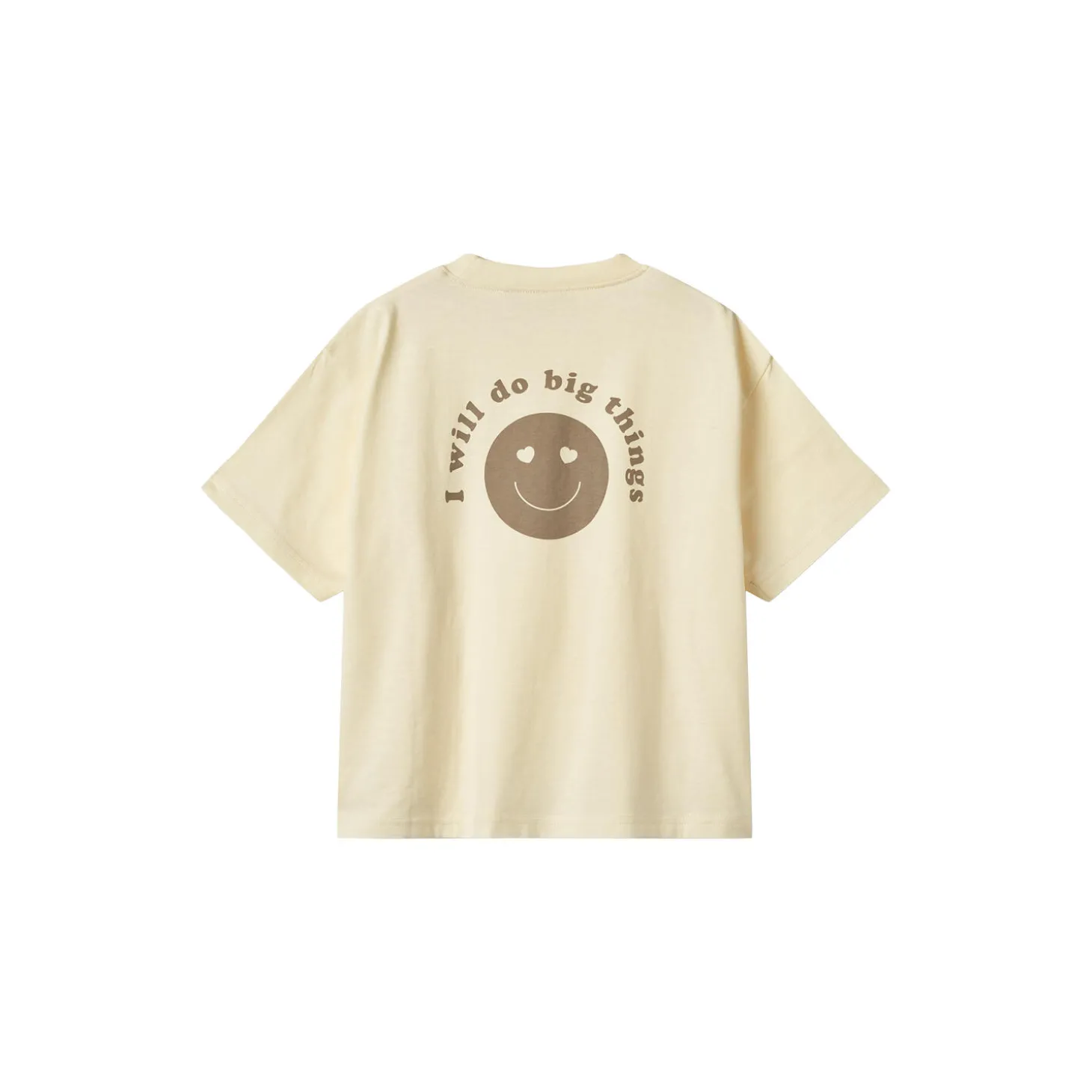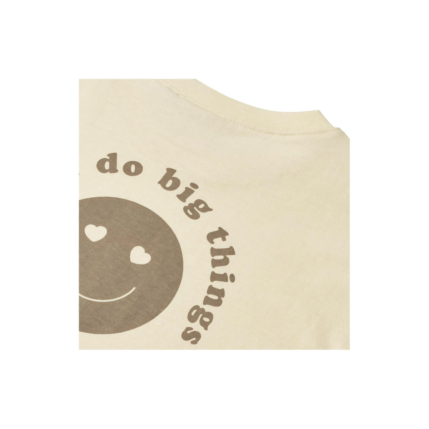 Wheat x Pernille Teisbæk for Børnecancerfonden’ is a limited edition collection of unisex children’s clothing – all profits go to the Danish Childhood Cancer Foundation.—Oversize t-shirt in soft GOTS-certified jersey with a print saying ‘I Will Do Big Things’ on the back.—- Standard 100 by OEKO-TEX®- 100% organic cottonThe product is GOTS certified.Certified by CUC license no. 1198955