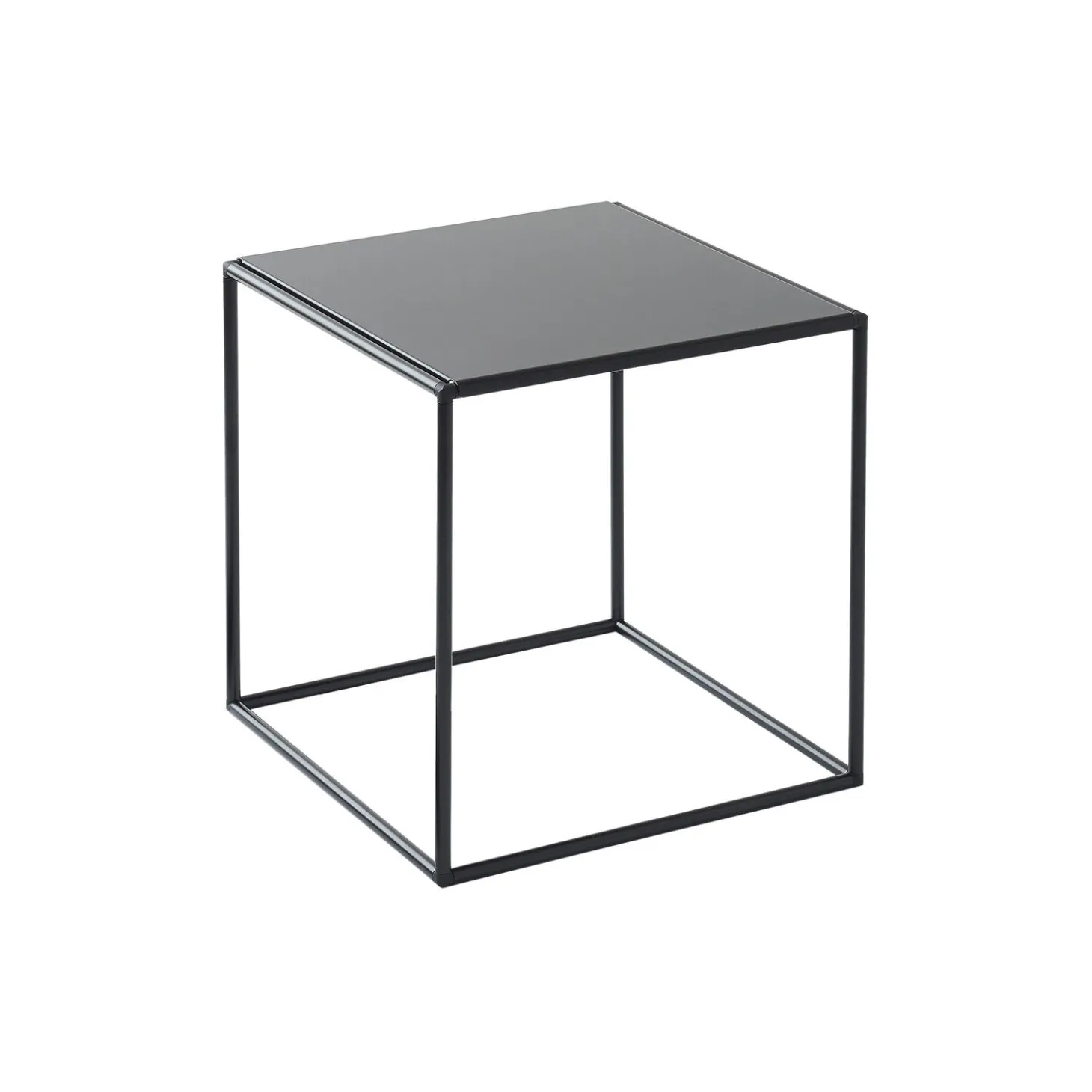 Table 40 i pulverlakeret stål med bordplade i metal fra Abstracta® System. Farve: black. Mål: H: 40 x L: 40 x B: 40 cm. Design: Poul Cadovius.