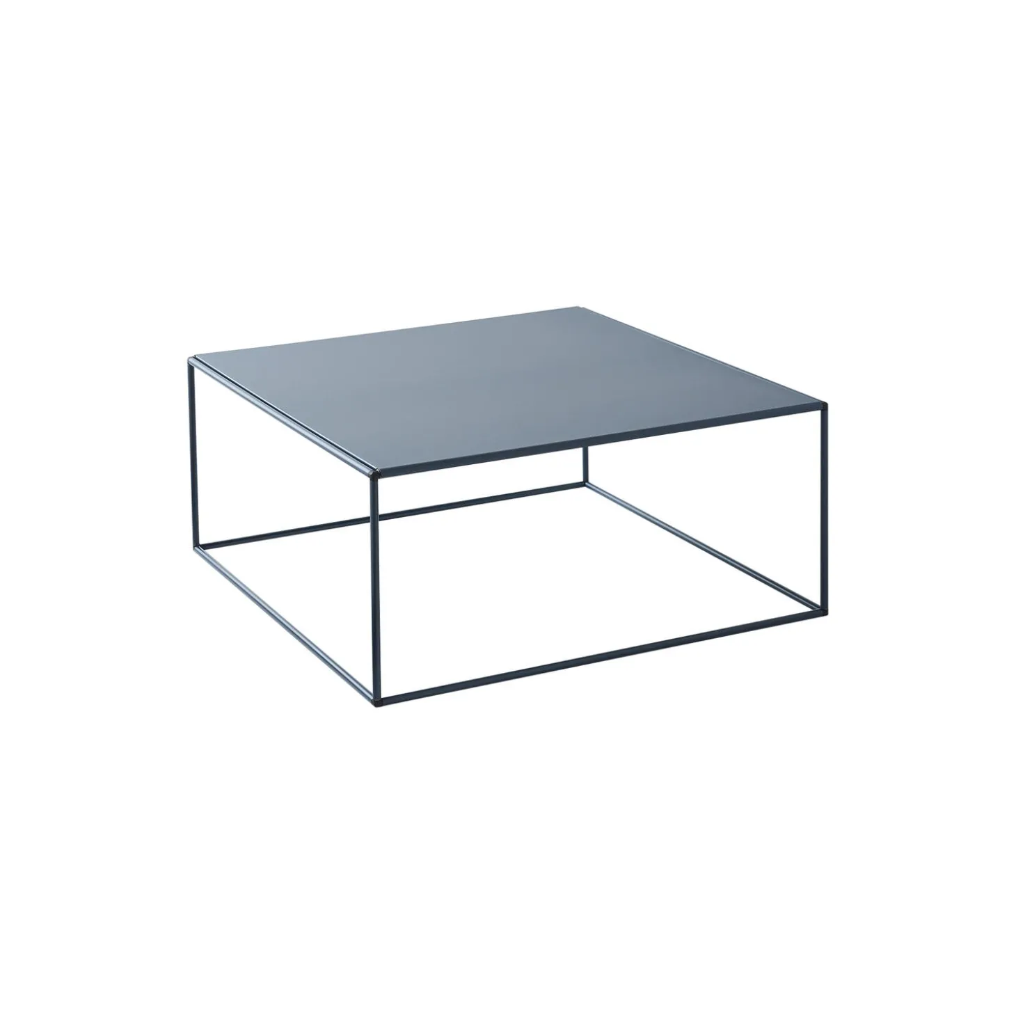 Table 80 i pulverlakeret stål med bordplade i metal fra Abstracta® System. Farve: blue. Mål: H: 36 x L: 80 x B: 80 cm. Design: Poul Cadovius.