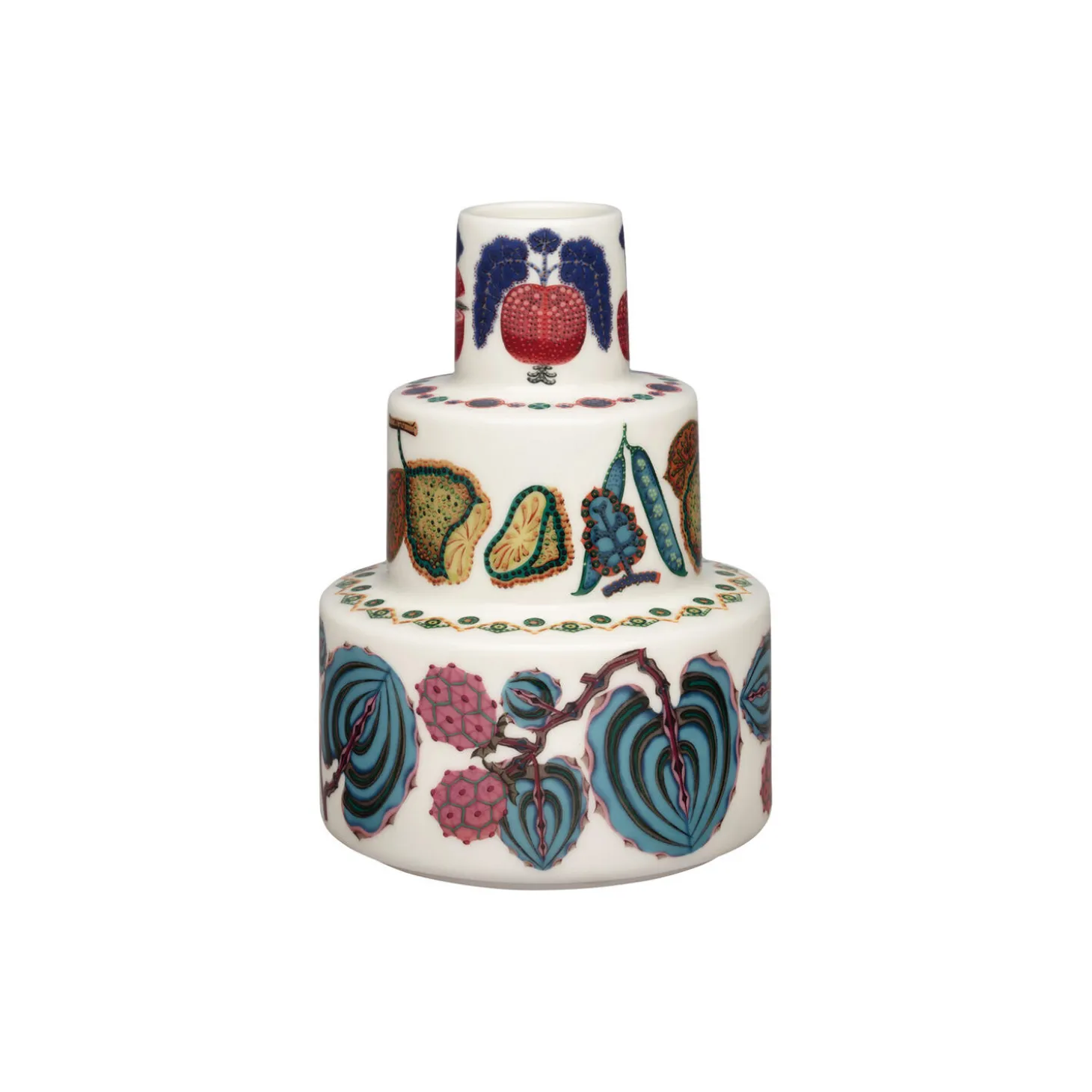 Den keramiske Taika Sato-vase er designet af Klaus Haapaniemi og er som et kunstværk, der supplerer hjemmets interiør med en unik stil. De fortryllende grøntsager og frugter er inspireret af stilleben i kunsten og fremhæver vasens skulpturelle form. Den keramiske vase er perfekt til blomster og grene og er et smukt møbel i sig selv. Taika Sato-vasen er et blikfang i ethvert rum. Taika Sato-vasen er også en god gave. Den er det perfekte valg til alle, der sætter pris på kunst og smukke ting.