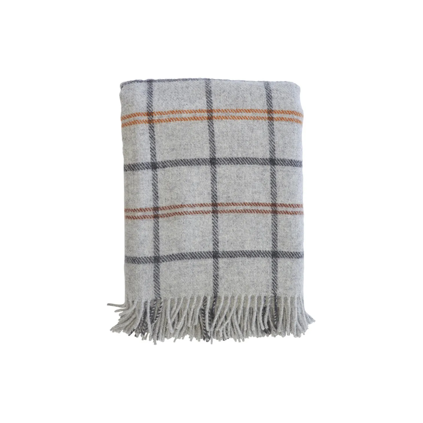 Tartan plaid i 100% uld fra Klippan Yllefabrik. Farve: light grey. Mål: 130×200 cm.
