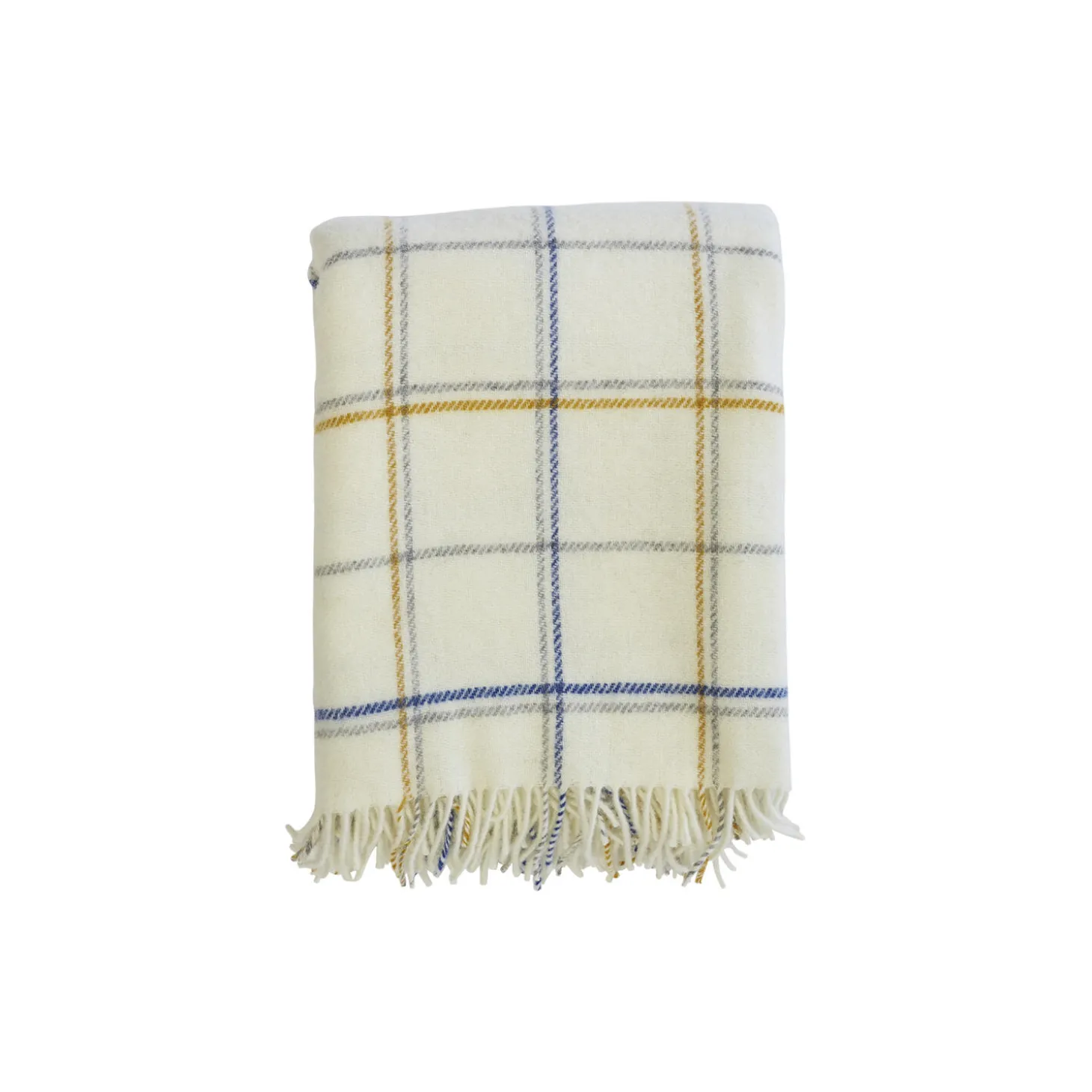 Tartan plaid i 100% uld fra Klippan Yllefabrik. Farve: off-white/mustard. Mål: 130×200 cm.
