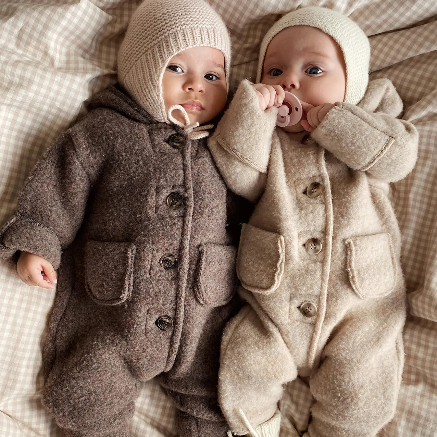 Teddy Onesie in 100% merino wool from Lalaby. Colour: oat.