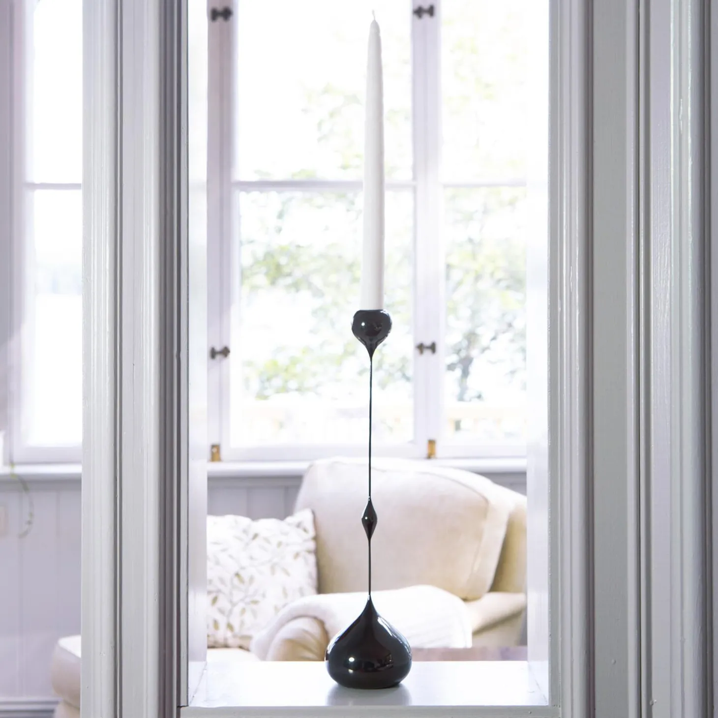 The thin silhouette of the Tender candlestick collection is inspired by Alberto Giacometti’s elongated sculptures, and how backlight can seemingly whittle down a shape to the slenderest proportions. They are made of brass with a nickel plated surface or with an added black finish. Available in one short and two tall versions.