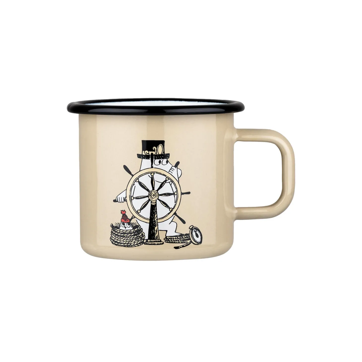 Moominpappa is the adventurer of the Moomin family; he loves to share stories about his adventures and is constantly planning new ones. The enamel mug is suitable for both hot and cold drinks. Muurla’s enamelware consists of a carbon steel core that carries a double-coating of enamel. The products are durable and light. Due to these traits the items can also be used outdoors, in addition to traditional settings. Dishwasher safe. Do not put in microwave oven.