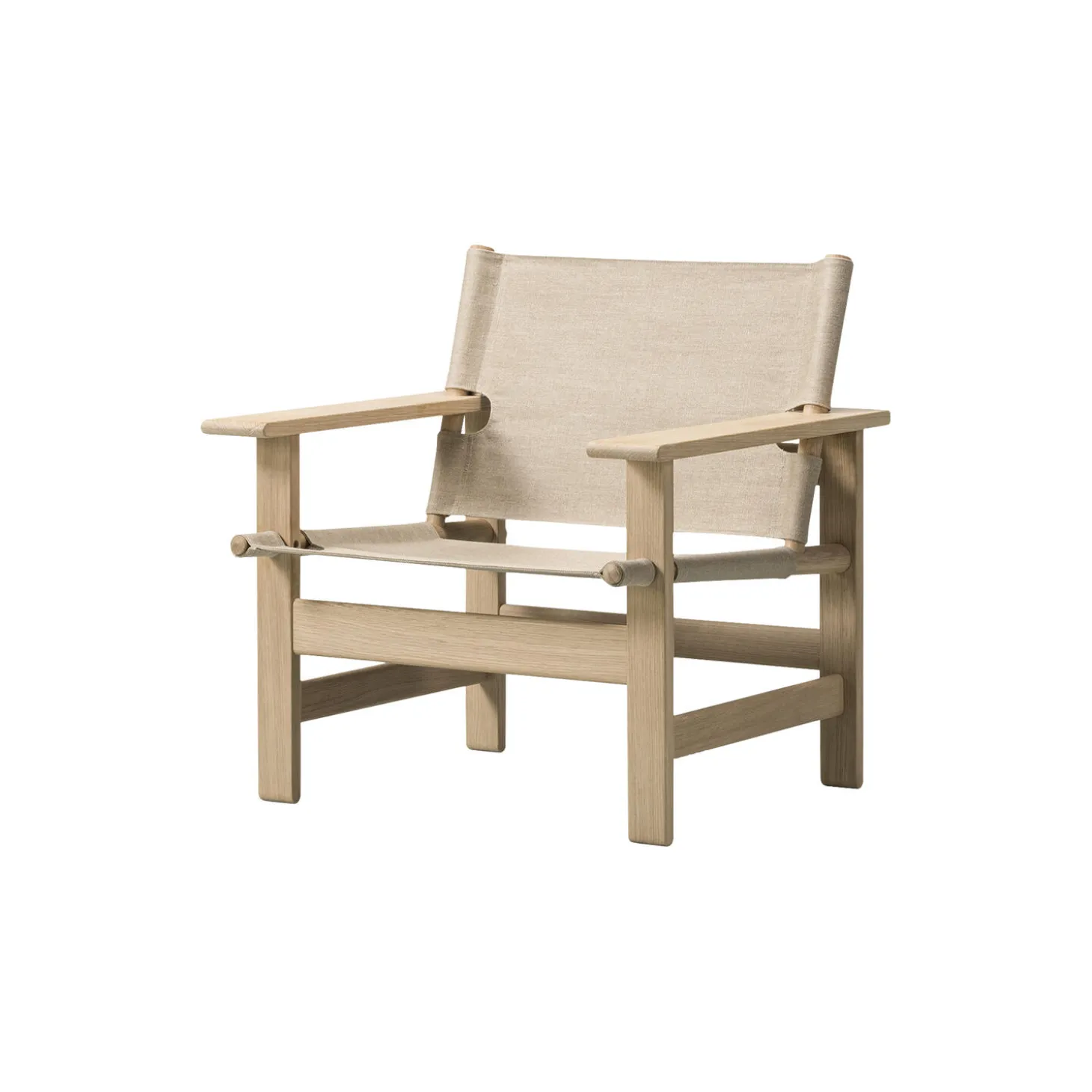 The Canvas Chair loungestol i sæbehandlet eg og kanvas fra Fredericia. Farve: sæbebehandlet eg/kanvas. Mål: H: 76 x B: 74 x D: 65,5 cm. Siddehøjde: 41,5 cm. Design: Børge Mogensen.