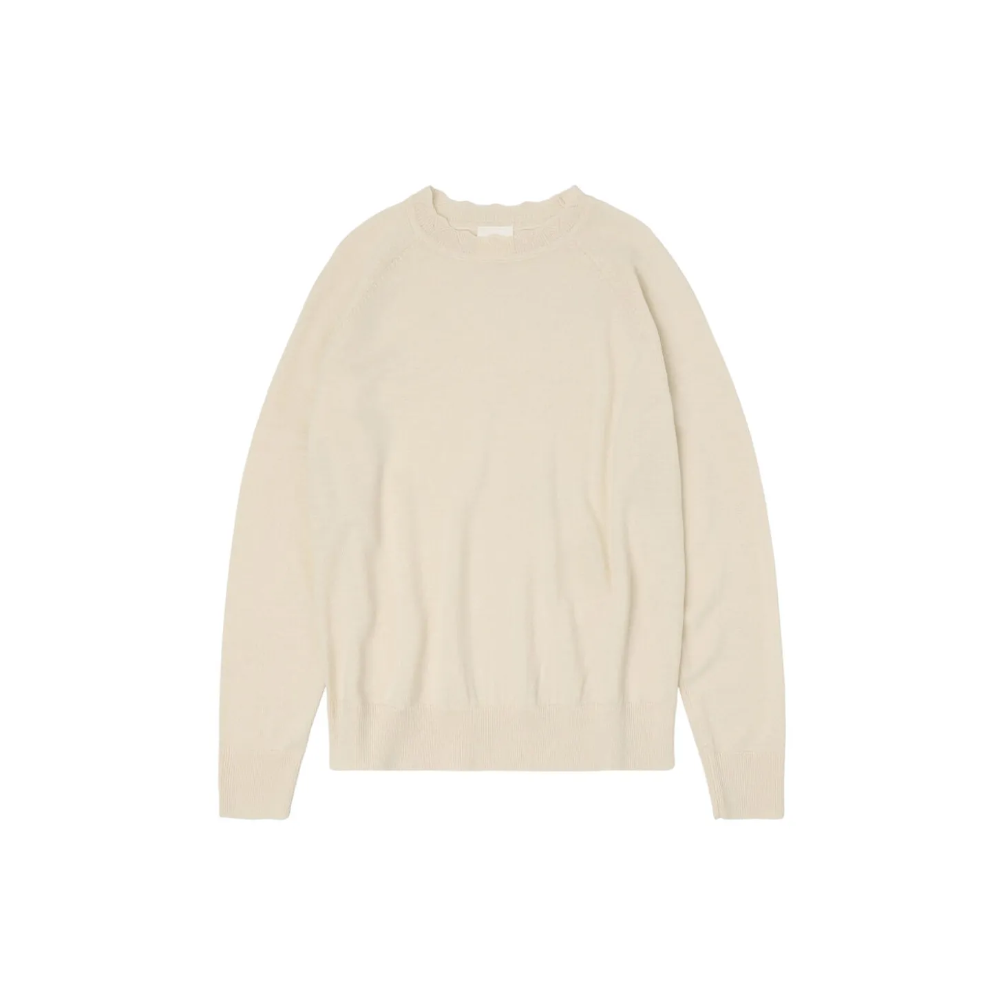 Denne lette sweater er lavet af ren merinould og er designet med raglanærmer og en dekorativ halskant. Blusen er strikket i let single jersey og har klassiske ribkanter og en almindelig, let løs pasform. Vores merinould er BLUESIGN® og RWS-certificeret, fri for skadelig kemi og stammer fra får, der ikke er blevet udsat for mulesing. 100% OEKOTEX®, RWS og BLUESIGN® certificeret merinould. Garnet er behandlet med en miljøvenlig teknologi, som gør, at tøjet kan maskinvaskes på uldprogram. Behandlingen indeholder hverken klorin eller andre halogener.