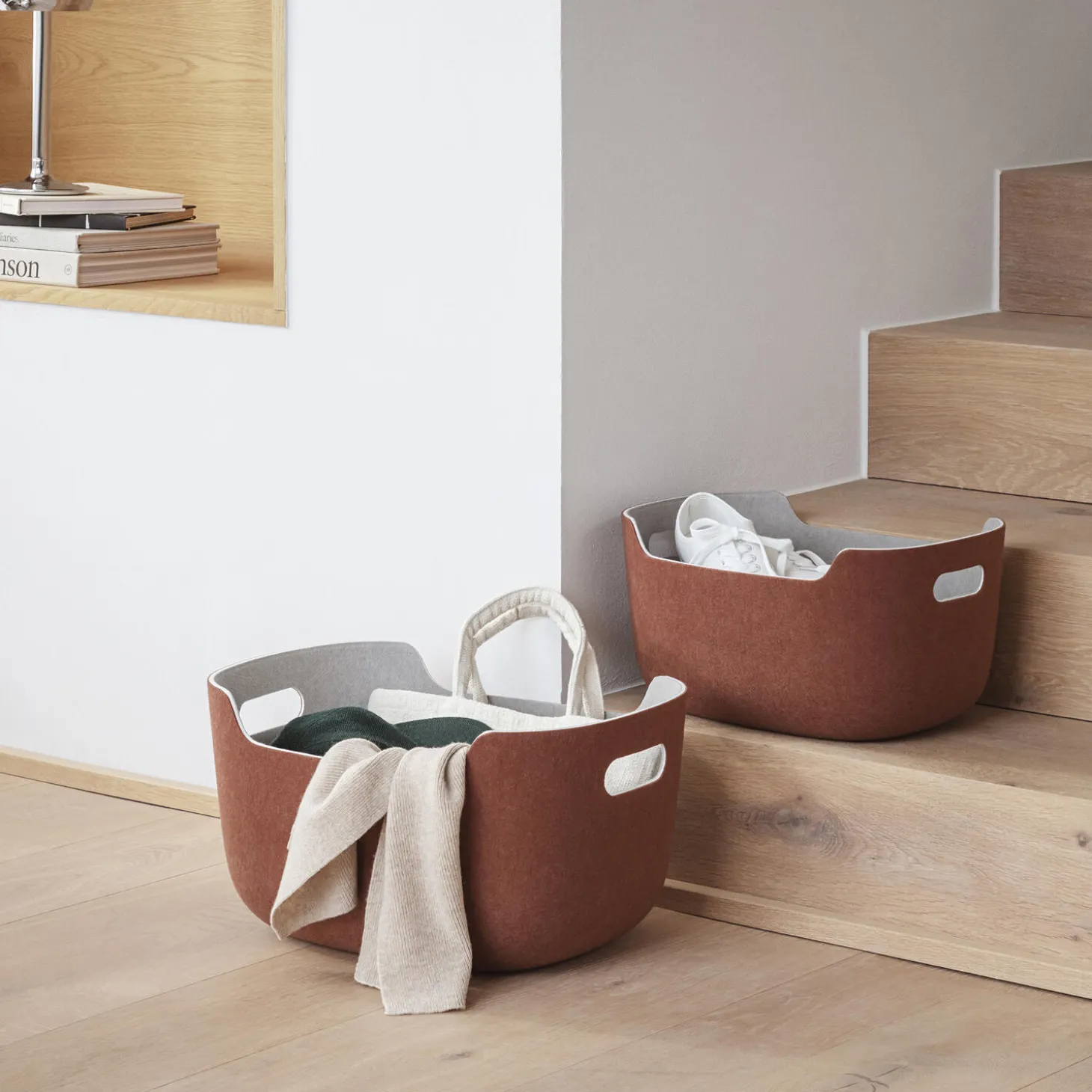 Gør dit hjem mere ryddeligt og organiseret med vores alsidige opbevaringskurve, der nemt kan rumme alt fra legetøj og bøger til kontorartikler og strikketøj. De behagelige håndtag gør kurvene ideelle til at transportere ting rundt i hjemmet, mens deres subtile og enkle design komplementerer enhver indretningsstil. Kurvene er solide i materialet og fremstillet af 100% genanvendt kunststof.