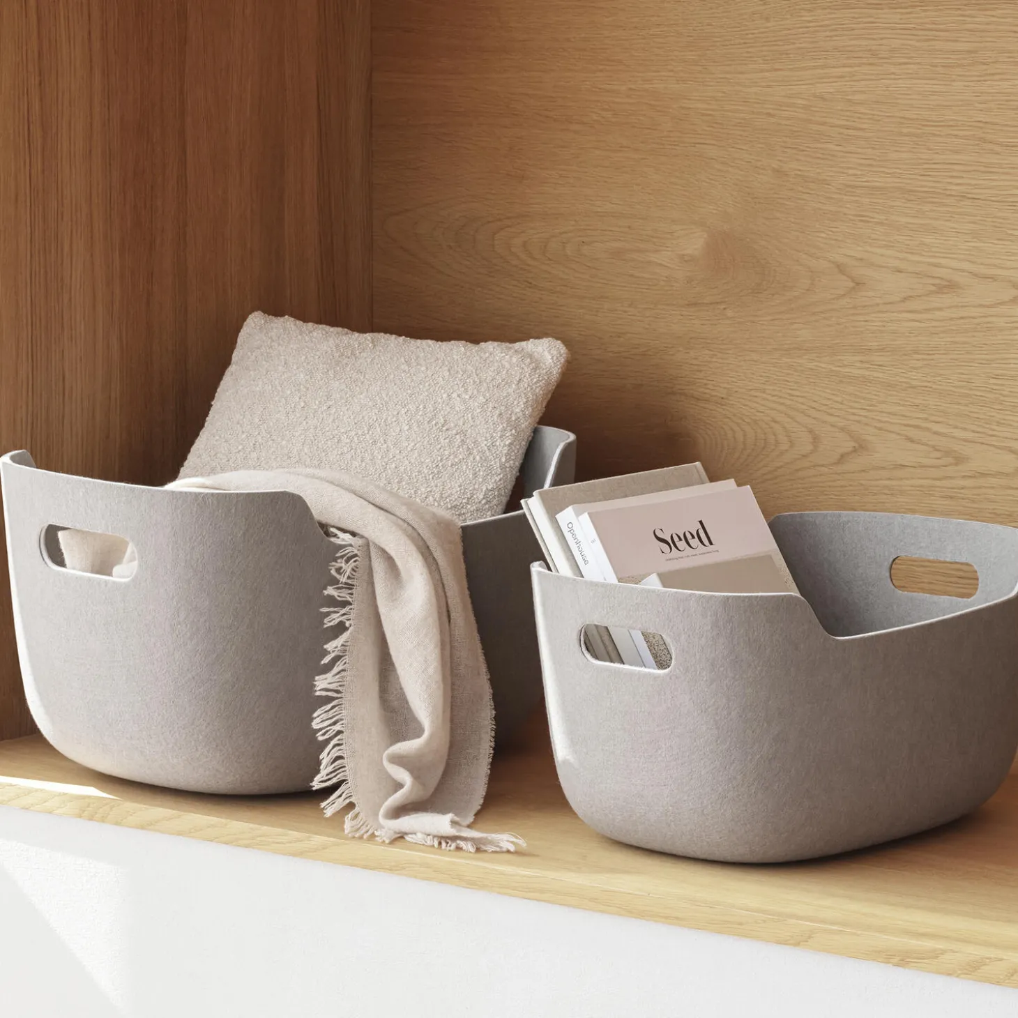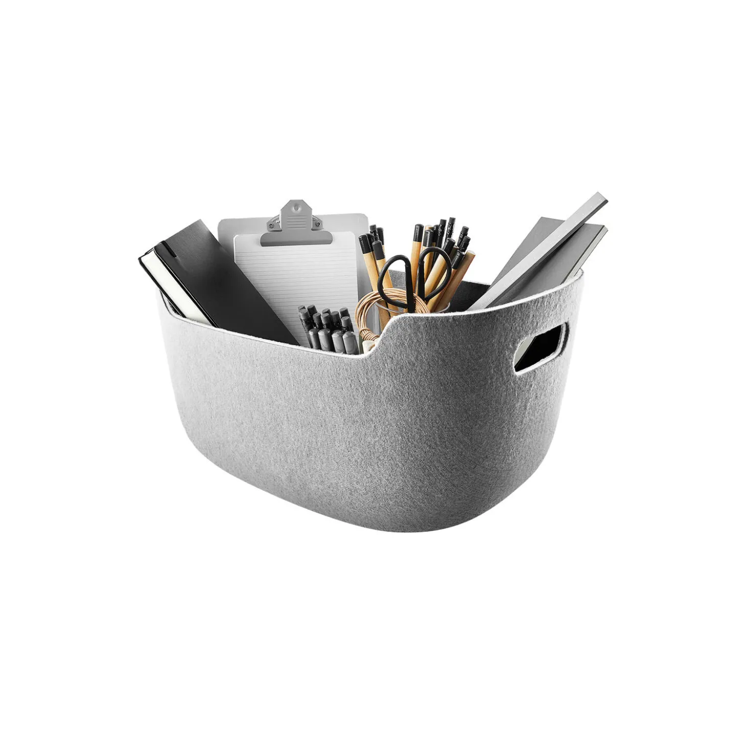 Gør dit hjem mere ryddeligt og organiseret med vores alsidige opbevaringskurve, der nemt kan rumme alt fra legetøj og bøger til kontorartikler og strikketøj. De behagelige håndtag gør kurvene ideelle til at transportere ting rundt i hjemmet, mens deres subtile og enkle design komplementerer enhver indretningsstil. Kurvene er solide i materialet og fremstillet af 100% genanvendt kunststof.