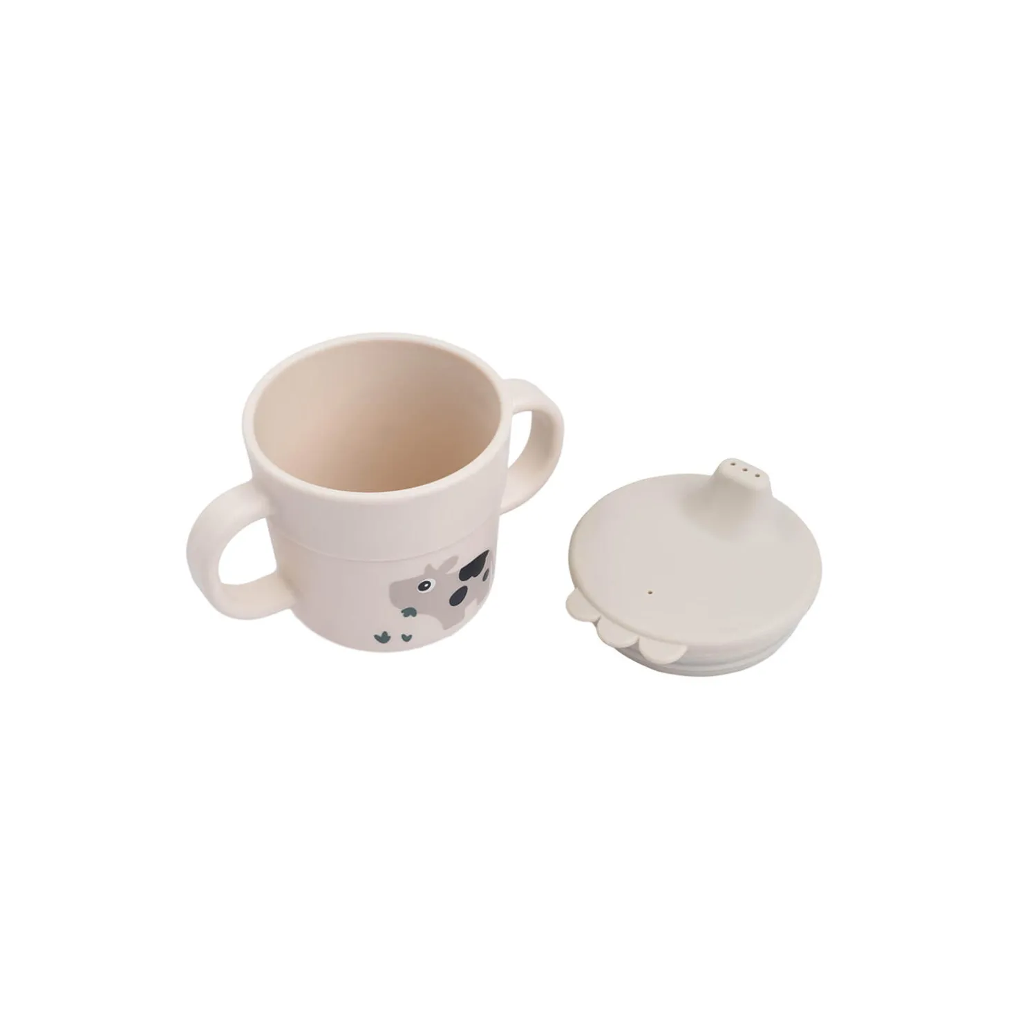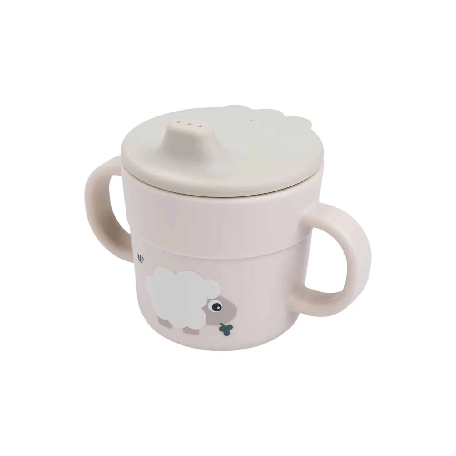 • De to håndtag gør det nemt for dit barn at bruge koppen selv• Brug koppen uden tudlåget, når dit barn bliver ældre• En praktisk antiskrid-base sikrer, at koppen ikke tipper let• Fremstillet af fødevaregodkendt PP, fri for BPA og andre skadelige stoffer• Kan bruges i mikrobølgeovn og vaskes i opvaskemaskine• Materialet er stærkt, langtidsholdbart og genanvendeligt• Fin sandfarve med et underholdende motiv af Sheepy og Dotti