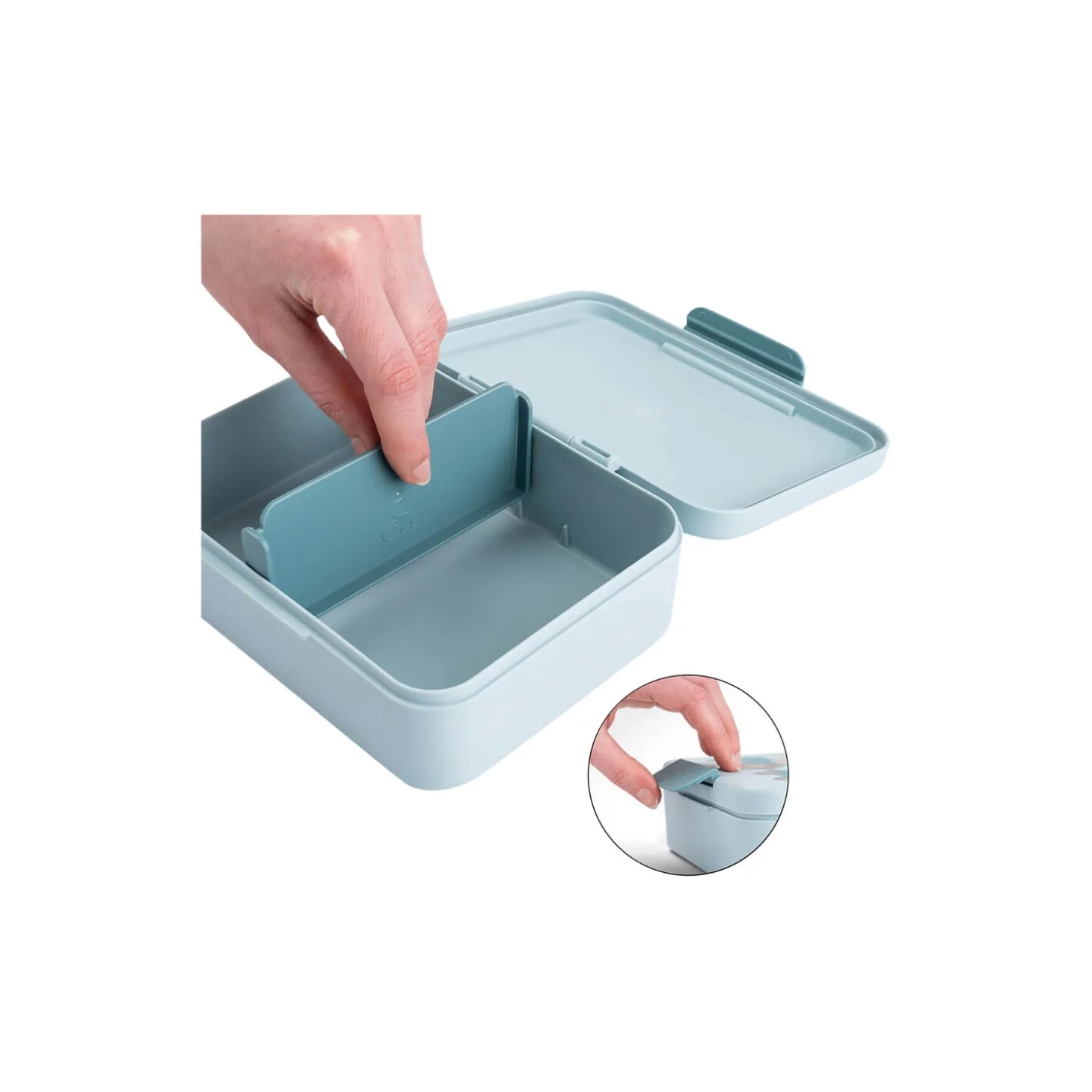 Frisk mad, glade maver og Deer friends, der deltager i festen. Denne rummelige madkasse er designet til at gøre måltidet enkelt og uafhængigt for børn, der er ved at lære at klare sig selv. Låget er nemt at åbne og lukke med små hænder, og det tilfredsstillende klik fortæller dem, at det er lukket ordentligt – ingen gætterier, ingen spild. En smart, aftagelig skillevæg giver dig mulighed for at adskille mad og snacks, præcis som dit barn kan lide det – sandwiches på den ene side, frugt eller sprøde grøntsager på den anden. Med fleksible placeringsmuligheder tilpasser den sig forskellige måltider og appetit, dag for dag. Madkassen kommer i en skøn blå farve med Pigee bag rattet og Dotti, der er med på turen – de perfekte venner til en glad frokost.