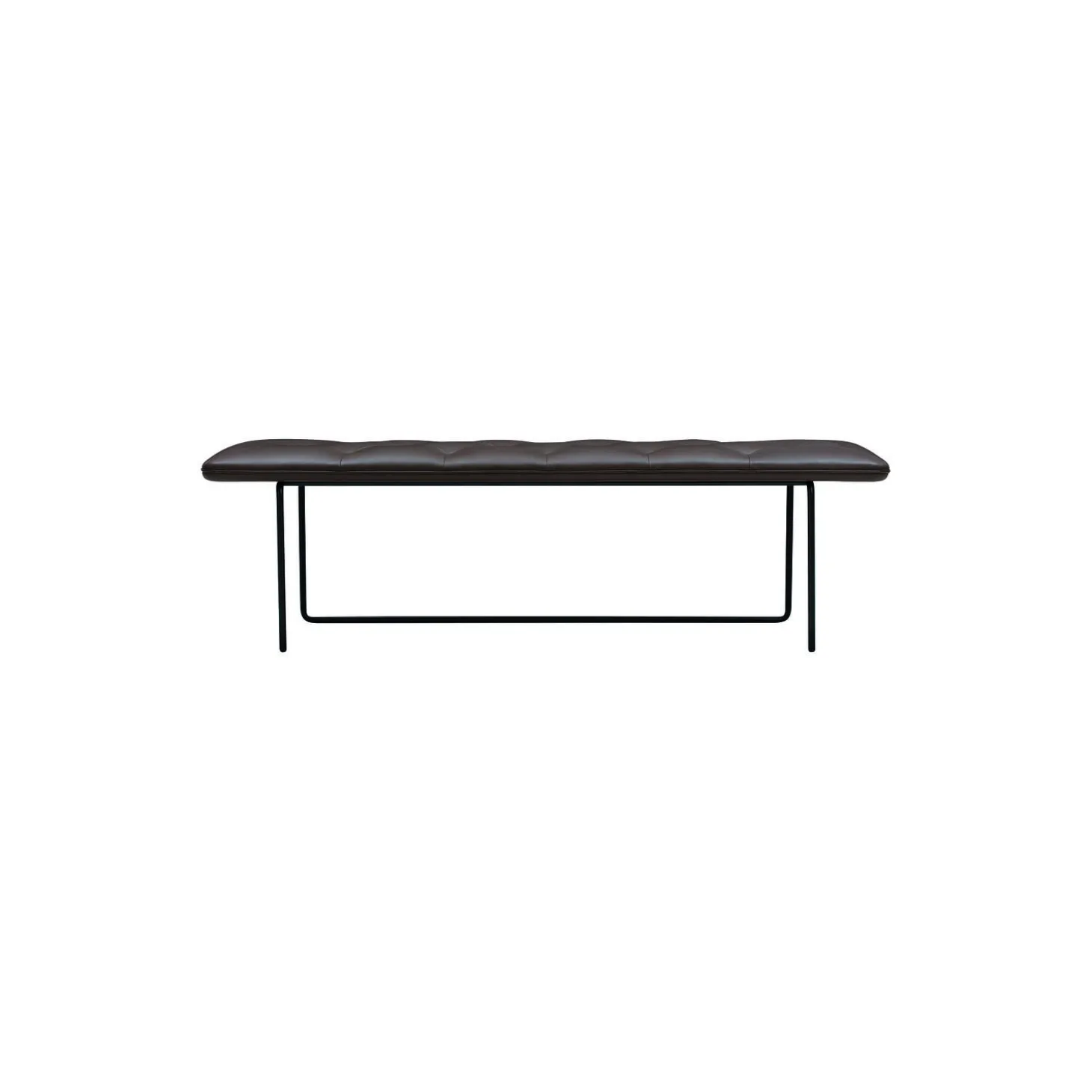 Tip Toe Bench med polstring i Parma anilinlæder og stel i pulverlakeret stål fra Wendelbo. Farve: marrone. Mål: H: 45 x L: 155 x B: 45 cm. Design: Steffensen & Würtz.