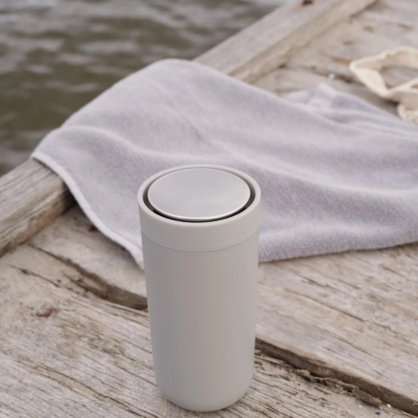 Ved at medbringe din genanvendelige To Go Click termokop hjælper du med at passe på miljøet og undgå engangskopper. To Go Click er det ideelle rejsekrus, uanset om du pendler til arbejde eller studie, går tur med vennerne eller barnevognen, eller bare er på farten. Denne To Go Click termokop på 0,4 liter i stål kombinerer smart design med høj funktionalitet. Kruset kan nemt betjenes med én hånd via et enkelt klik på toppen, som gør det muligt at drikke fra alle sider af kruset. Tryk igen, og To Go Click er sikkert lukket.