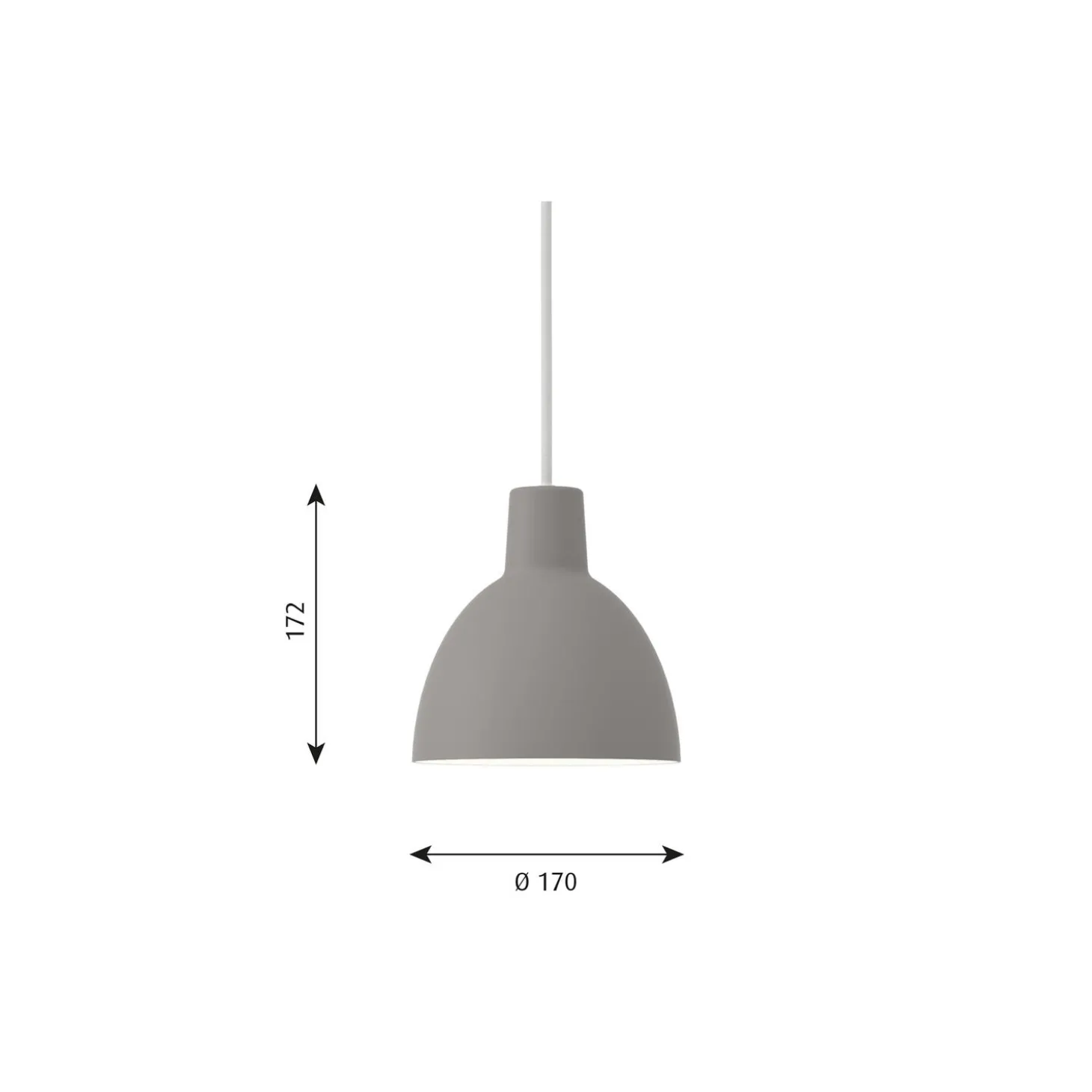Toldbod 170 pendel i optrukket aluminium fra Louis Poulsen. Farve: lysegrå. Mål: H: 17,2 x Ø 17 cm. Lyskilde: maks. 40W E14. Design: Louis Poulsen.