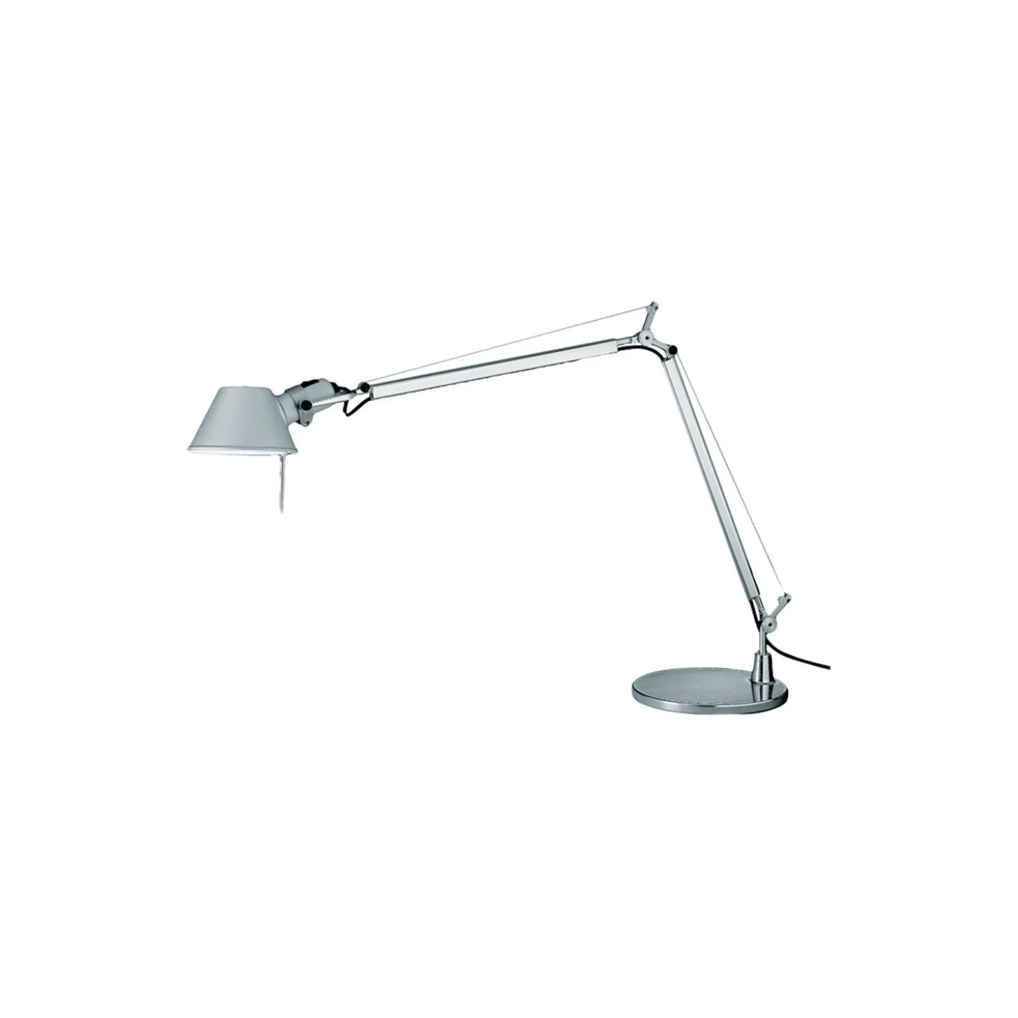 Tolomeo bordlampe i aluminium fra Artemide. Farve: metal grå. Mål: H: 64,5 x L: 78 x Ø 23 cm. Design: Michele De Lucchi og Giancarlo Fassina.