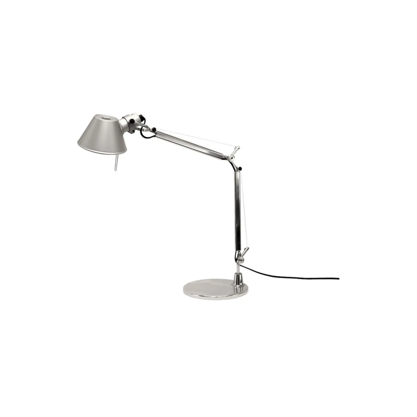 Tolomeo Midi bordlampe i aluminium fra Artemide. Farve: aluminium. Mål: H: 50 x L: 60 x Ø 18 cm. Lyskilde: indbygget LED 7W 2700K. Design: Michele De Lucch og Giancarlo Fassina.