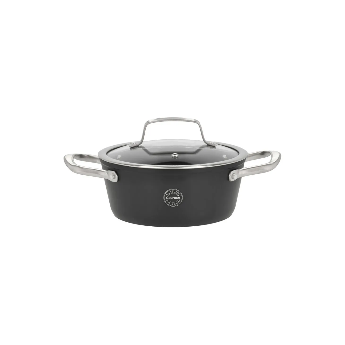 Travo-serien fra Pillivuyt Gourmet er produceret med en slidstærk keramisk belægning. Den er perfekt til dig, der har brug for gode og alsidige gryder og pander i forskellige størrelser. Travo-seriens krop er fremstillet af 98 % genanvendt aluminium. Greb og bund er fremstillet af rustfrit stål. Bunden på 3,3 mm giver en ensartet og effektiv varmefordeling. Den keramiske belægning er ekstra hårdfør, har lang levetid og tåler redskaber af både plast, silikone, træ og metal. Smuk, mat sort yderside. Minimalt behov for fedtstof og nem rengøring. Nittede håndtag, der mindsker varmeoverførelsen. Glaslåg med dampudslip for sikker tilberedning. Velegnet til alle varmekilder inkl. induktion. Tåler ovn op til 240 grader. Låget tåler ikke at komme i ovnen. Håndopvask anbefales.