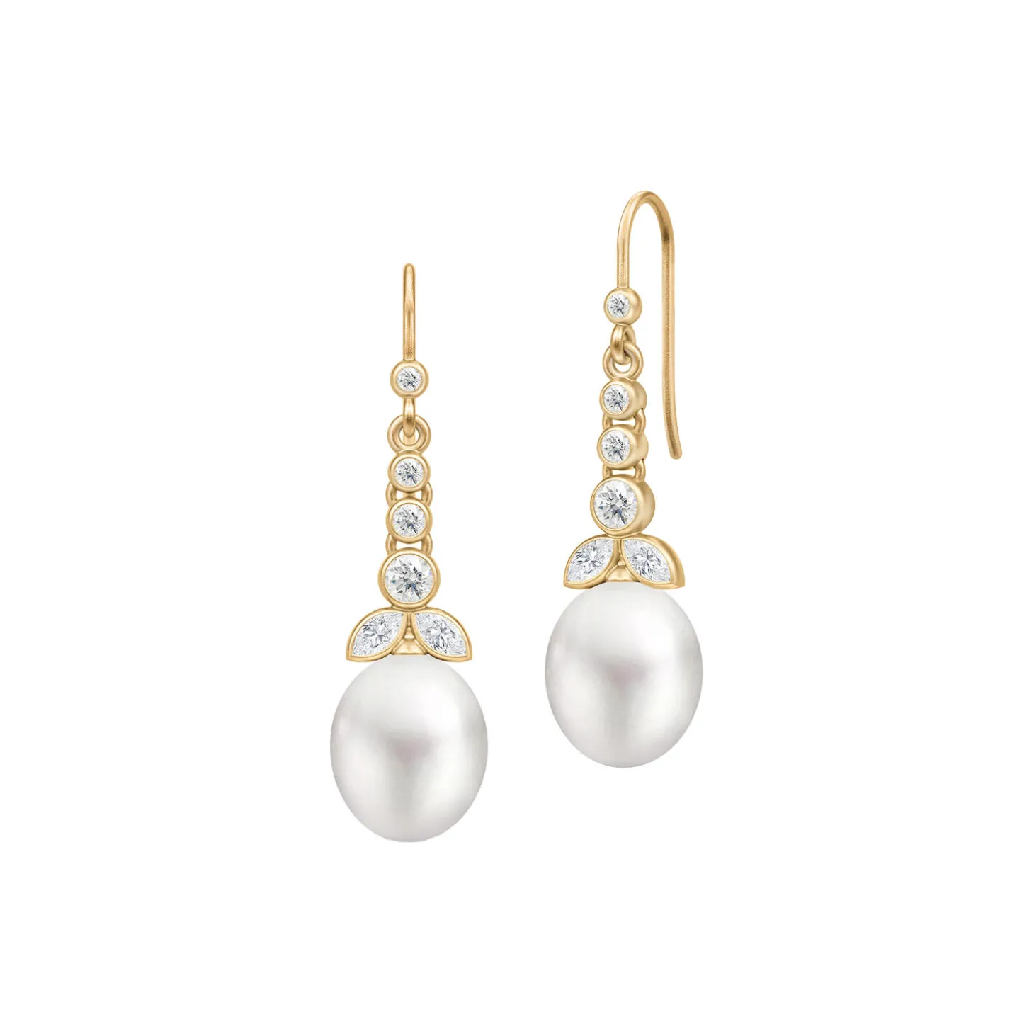 Det ultimative symbol på evig skønhed. Disse fortryllende chandeliers kan tilføre et strejf af magi til ethvert look. Øreringene er produceret i 22 karat forgyldt 925 sterling sølv og bærer en unik kombination af blomsterede detaljer af håndsatte zirkoner og sirlige, hvide ferskvandsperler i dråbeform.