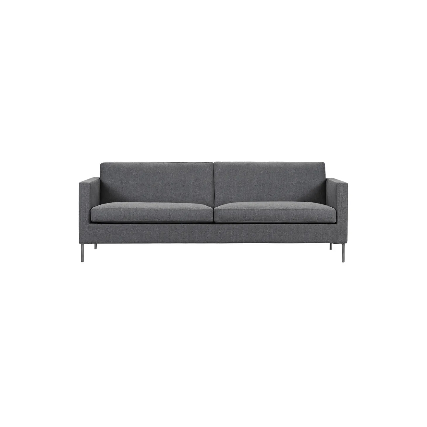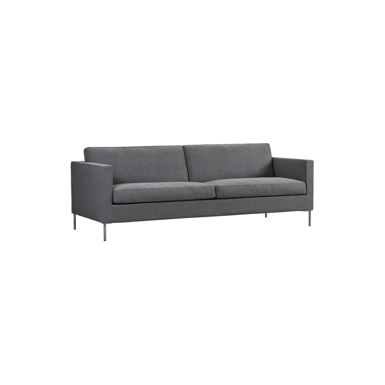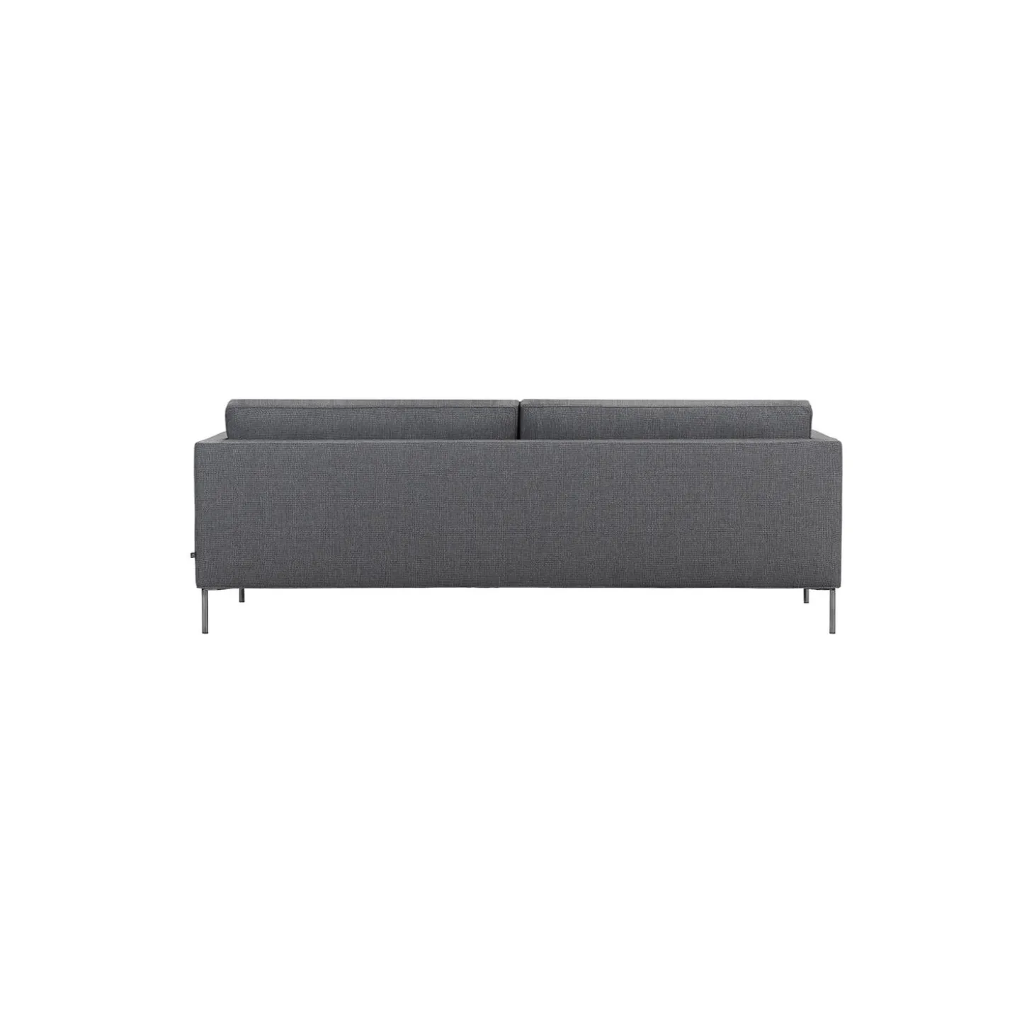 Komfortabel sofa fra Eilersen, designet af Jens Juul Eilersen, med bløde hynder og et klassisk formsprog. hvor design, håndværk og funktion går op i en højere enhed. Sofaen er med betræk i en flot grå farve med stof fra Eilersen med runde ben i børstet stål og duntop-puder i sæderne.