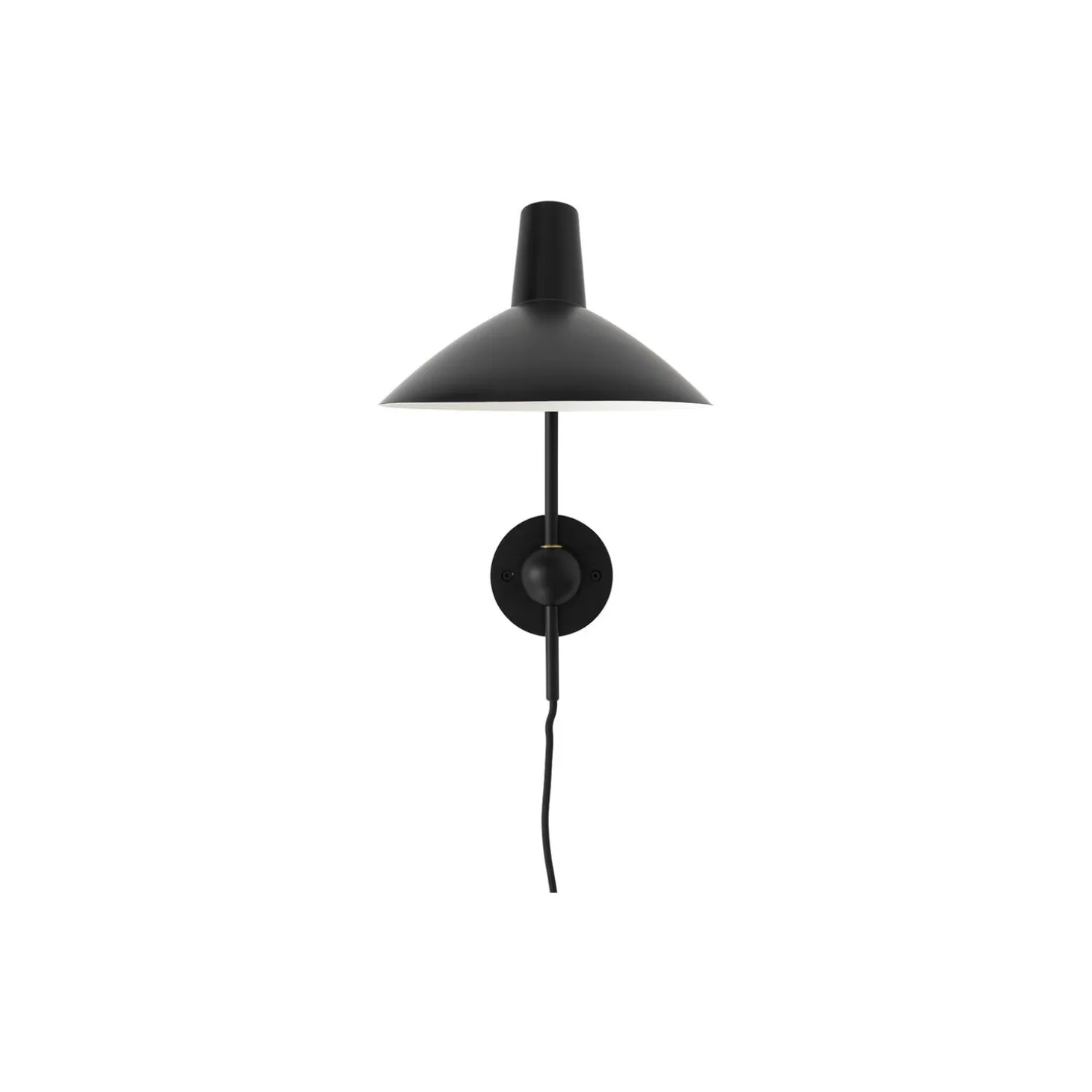 An adaptation inspired by sketches of the original lamp by Hvidt & Mølgaard, the new Tripod Wall Lamp remains true to the essence of the Tripod design. Crafted from lacquered aluminum, the wall lamp is anchored by a spherical base that establishes a visually solid foundation, while the shade’s swivel feature allows the lamp to distribute a generous diffusion of light. The addition of a new colourway, white with brass details, illustrates the timeless appeal of a classic design.