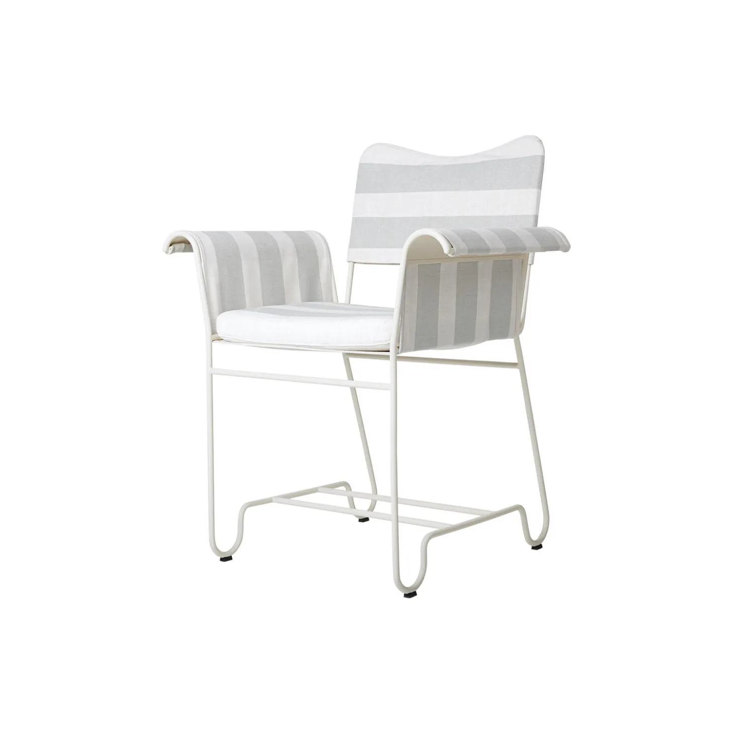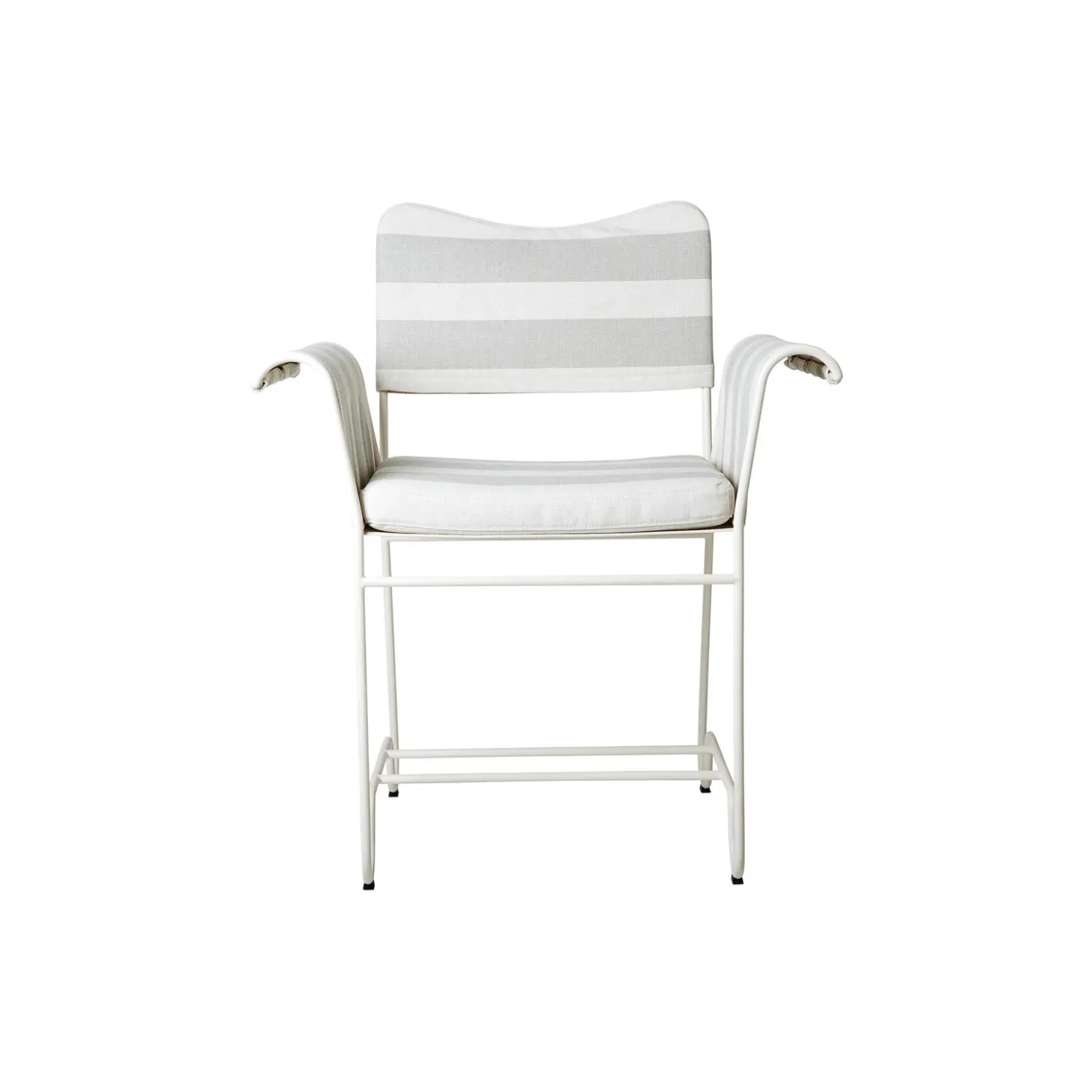 Tropique Dining Chair without Fringes i Leslie Stripe Limonta 20 tekstil og stel i lakeret rustfrit stål fra GUBI. Farve: Leslie Stripe Limonta 20/classic white semi matt. Mål: H: 86 x B: 71 x D: 58 cm. Siddehøjde: 45 cm. Design: Mathieu Matégot.