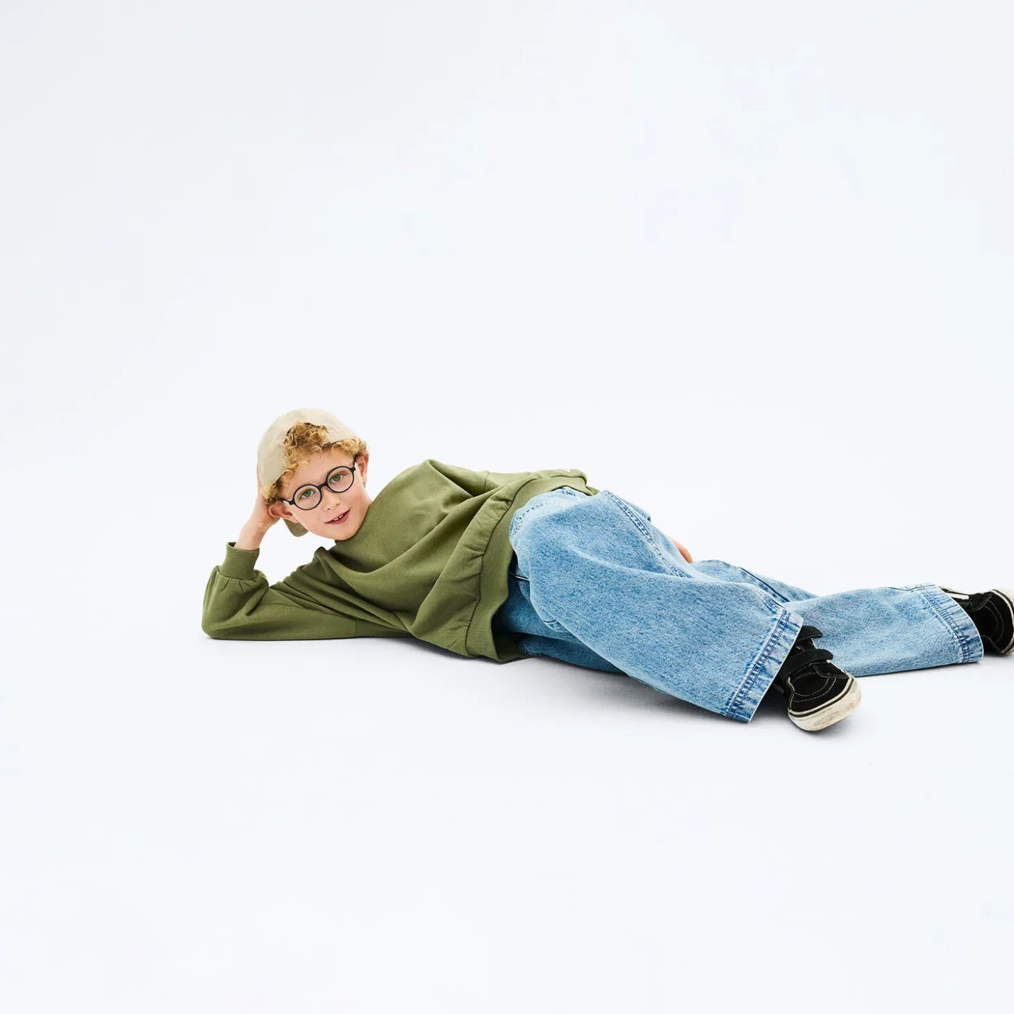Wheat x Pernille Teisbæk for Børnecancerfonden’ is a limited edition collection of unisex children’s clothing – all profits go to the Danish Childhood Cancer Foundation—Baggy jeans in washed denim with adjustable waist, side pocket, loop and smiley-embossed buttons. A durable everyday classic that can be used across the seasons.Trousers waist measurements (please note that the waist has an adjustable elastic band): 2 years – 45 cm4 years – 49 cm6 years – 53 cm8 years – 57 cm—- Standard 100 by OEKO-TEX®- 100% organic cotton