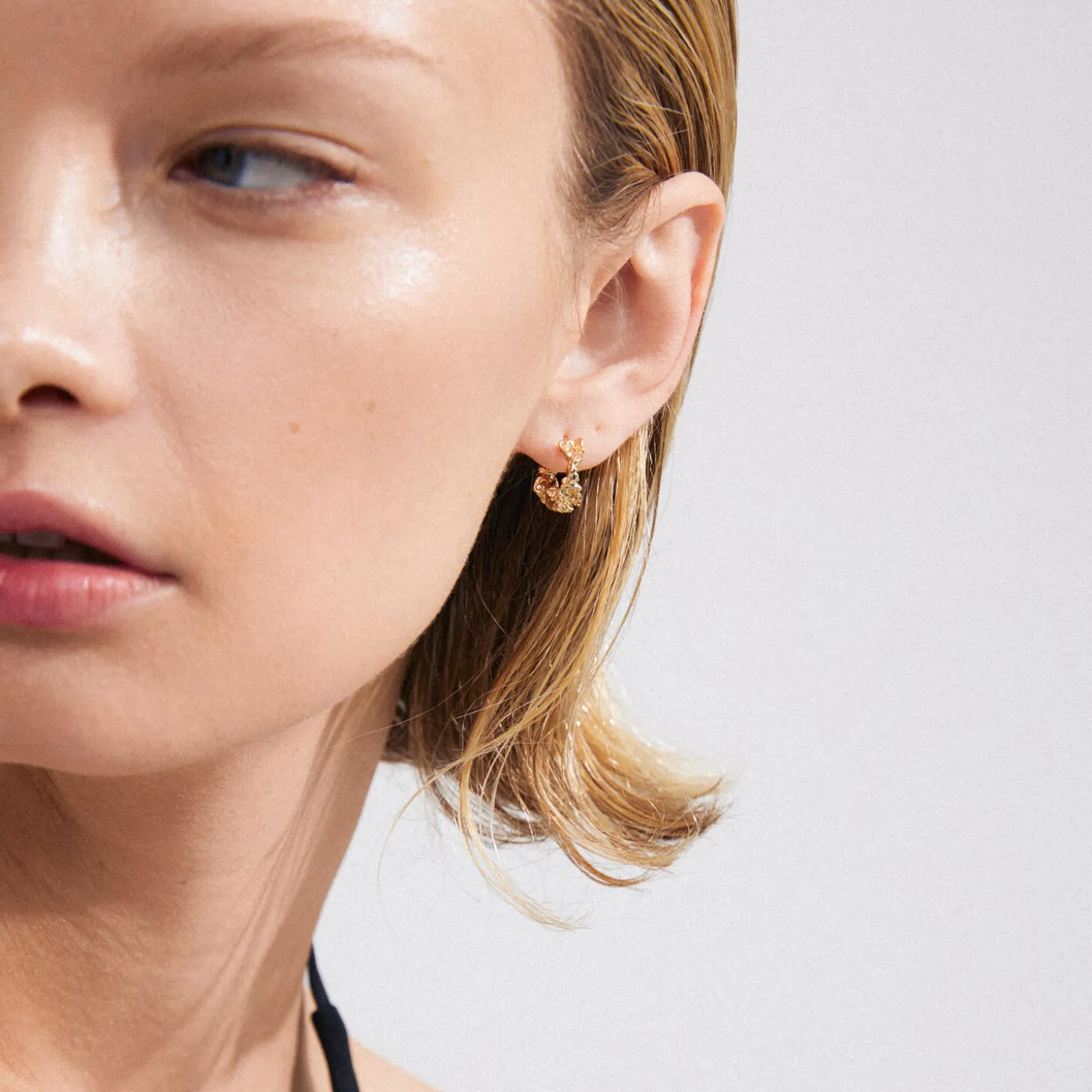 Trust your journey, og tag dit look til næste niveau med Pilgrims TRUST øreringe. De rustikke guldbelagte huggie hoops leverer en organisk charme og en handcrafted feel, der er ideel til at spice dine everyday outfits op. En letanvendelig kliklås gør dem nemme at style på farten, hvor det rustikke udtryk komplementerer sæsonens knitwear og bløde tekstiler. Øreringene er mindfuldt fremstillet med 99% genanvendt materiale – det er fashion med omtanke.