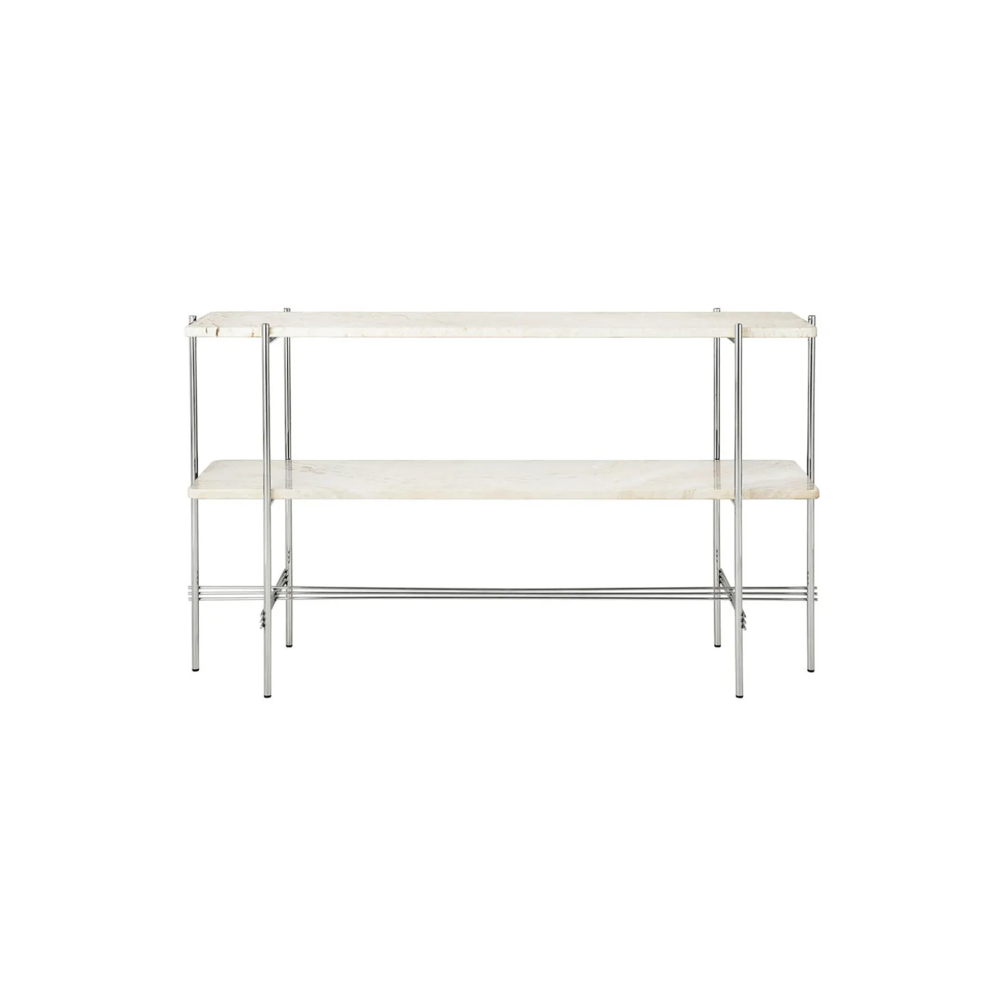 The TS Console creates a sophisticated and sculptural aesthetics for any room with its characteristic slender legs, beautifully crossing details and contrasting solid table top. The rectangular console serves equally well as a storage unit, serving station or media console, featuring either one or two table tops.The timeless TS Console by GamFratesi is extended from the classic TS Table, made for the renowned restaurant The Standard in Copenhagen, where not only its name got its inspiration but also aesthetics and material choices were found.