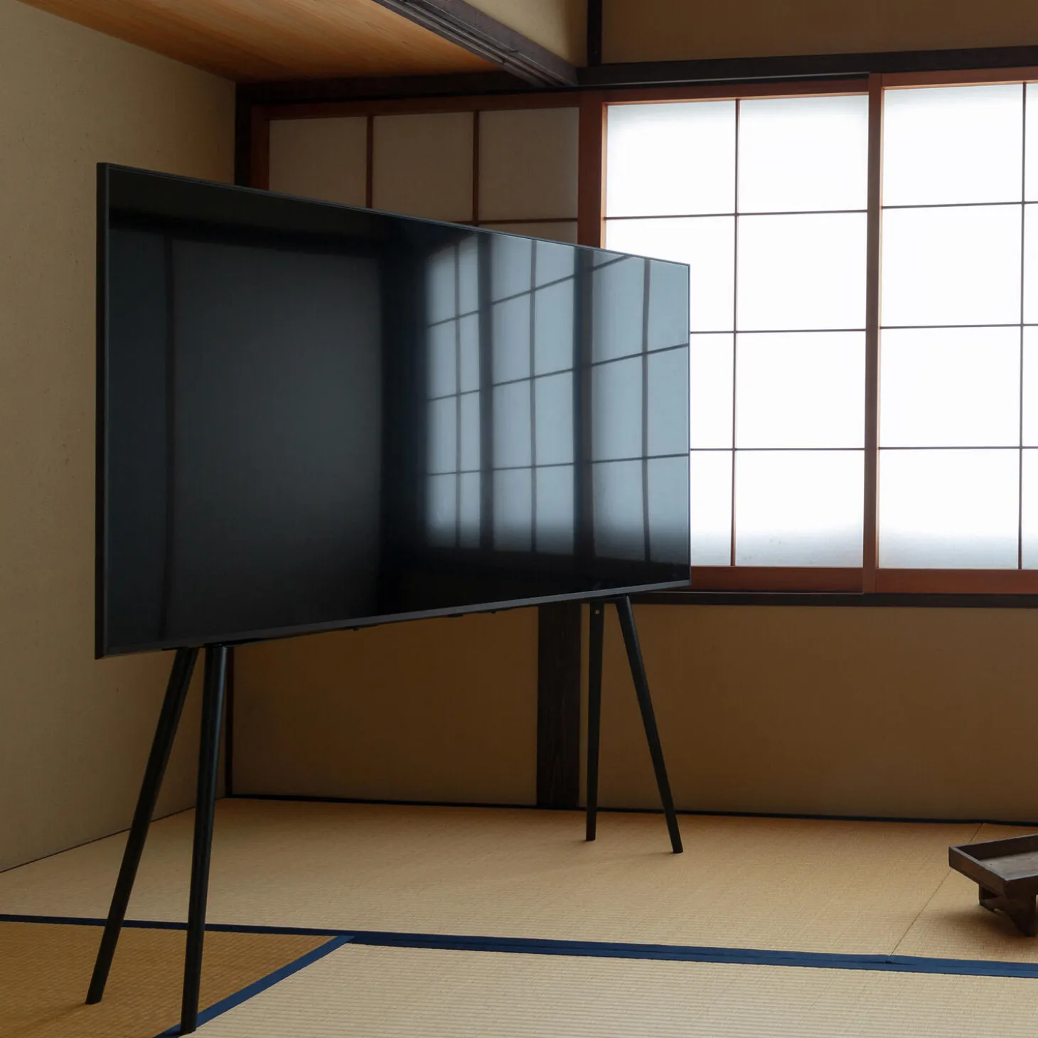 TV-stativ XL 55”-77” in black painted birch fra JALG. Farve: black. Mål: H: 69,5 x L: 134,5 x D: 33 cm. Kompatibel med alle tv’er med VESA-tilbehør (kun vandrette fastgørelsespunkter i nederste række).OLED-tv: fastgørelse i øverste eller nederste rækkeAndre tv’er: fastgørelse i nederste række.