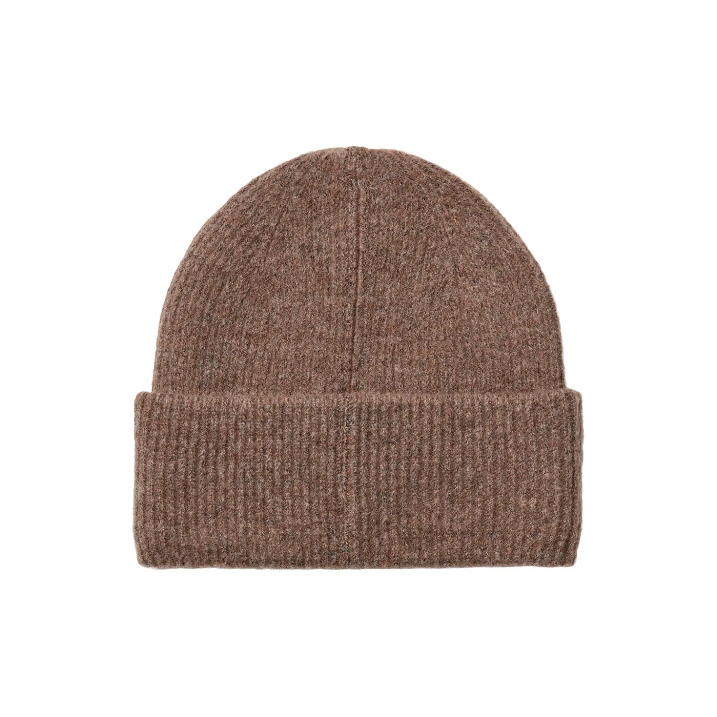 Classic, warm and ultrasoft rib beanie with front logo patch on the fold. The beanie has a snug fit and a beautiful melange effect in the yarn, and a handcrafted stitching detail on the logo. The perfect essential and comfy beanie for any cold winter day.