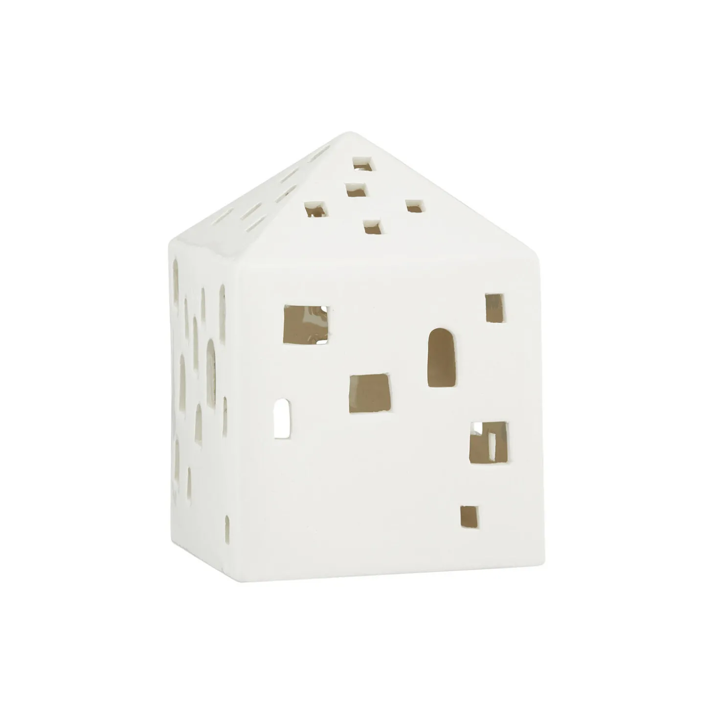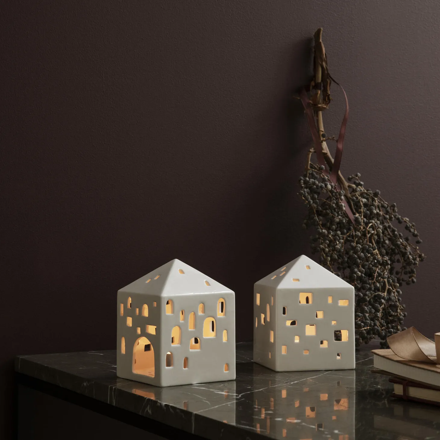 Urbania-kollektionen er en hyldest til lyset og perfekt til at understrege julestemningen. De små fajance-huse, der er designet af designduoen Bache og Bendix Becker, er inspireret af kendte bygningstyper og kaster det smukkeste lys ud gennem vinduer og døre. Det karakteristiske byhus med tydelige klassicistiske referencer er ingen undtagelse. Lad det lyse op alene eller placer det sammen med andre Urbania-huse og skab et helt unikt udtryk i vindueskarmen, på skænken eller på julebordet.