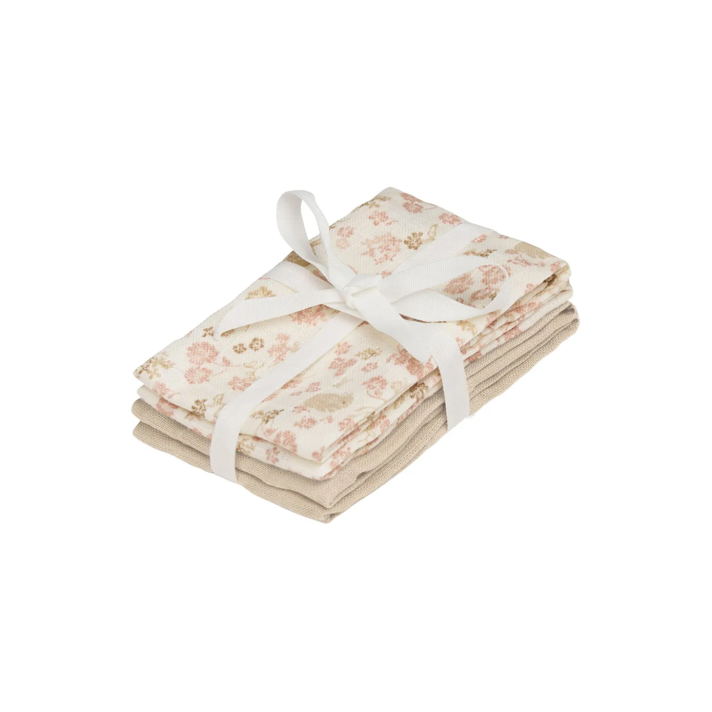 Sampak med fire bløde Muslin Vaskeklude i 2 x 2 smukke Cam Cam Copenhagen prints. Fremstillet af 100% økologisk bomuld.